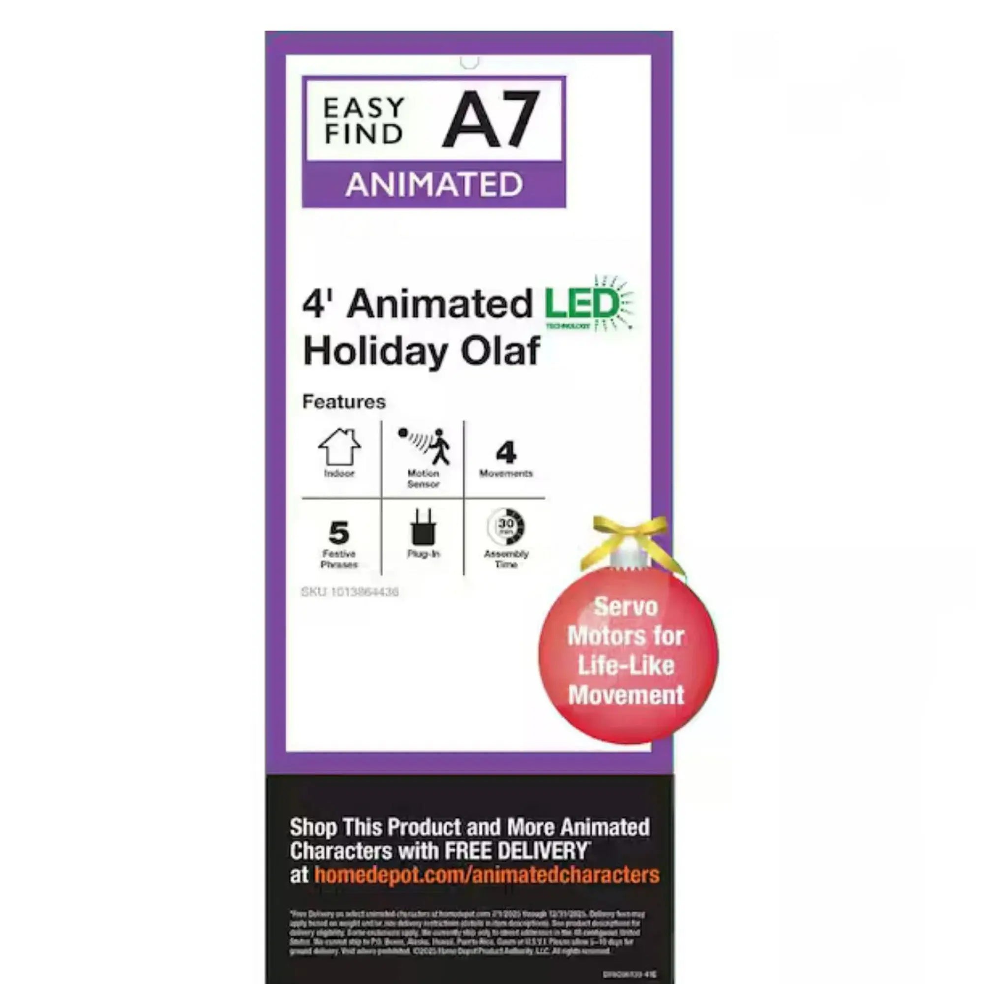 • Meet Olaf, the beloved snowman brought to life with animated LED magic! This interactive statue features motion sensors that trigger lifelike movements as he speaks five cheerful phrases. Powered by a simple plug-in connection, Olaf becomes the ultimate holiday centerpiece that delights kids and spreads Christmas cheer throughout your home. Perfect for creating unforgettable moments of laughter and wonder during the festive season.