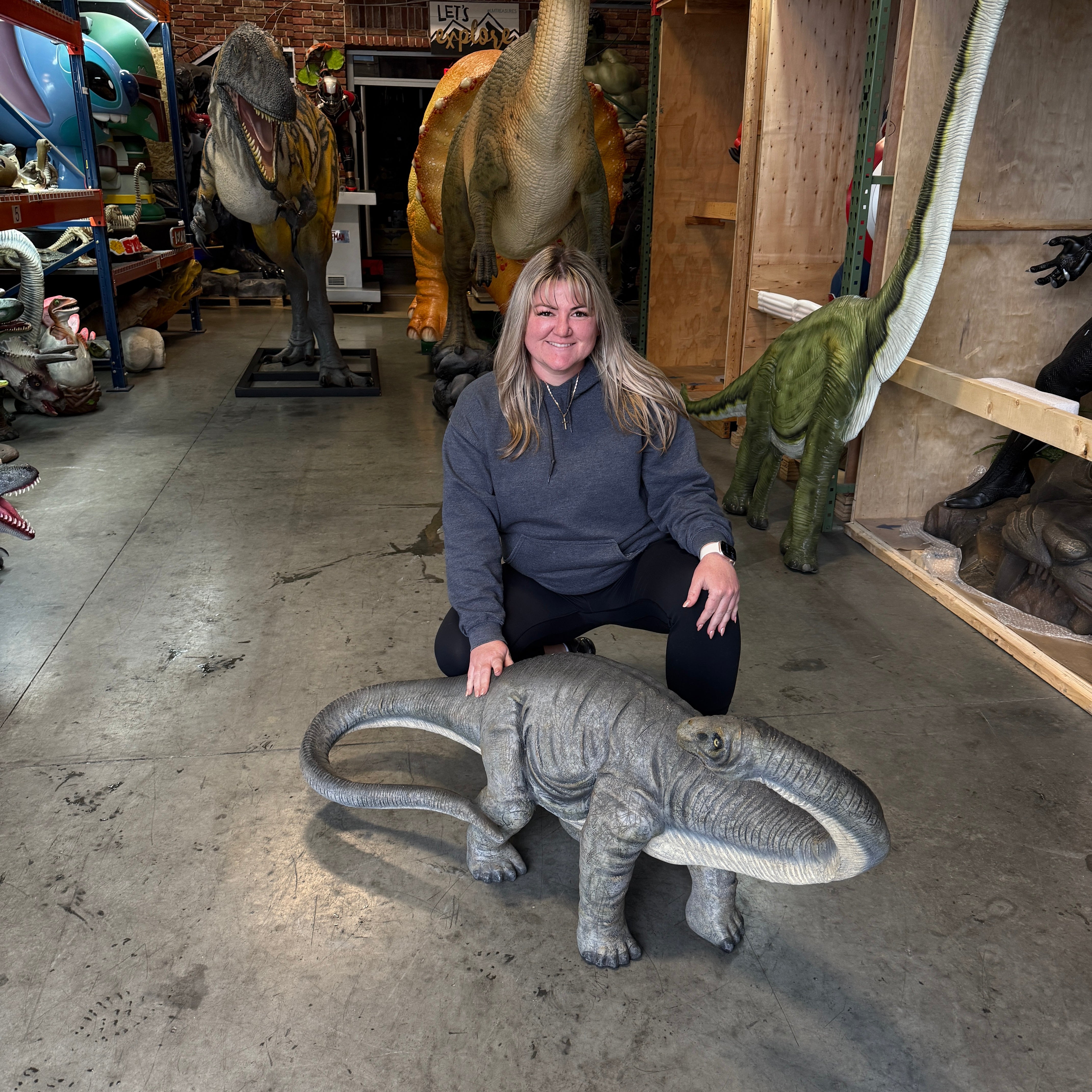 - Life-size baby Apatosaurus replica. A beautifully crafted statue, bringing prehistoric charm to any display.