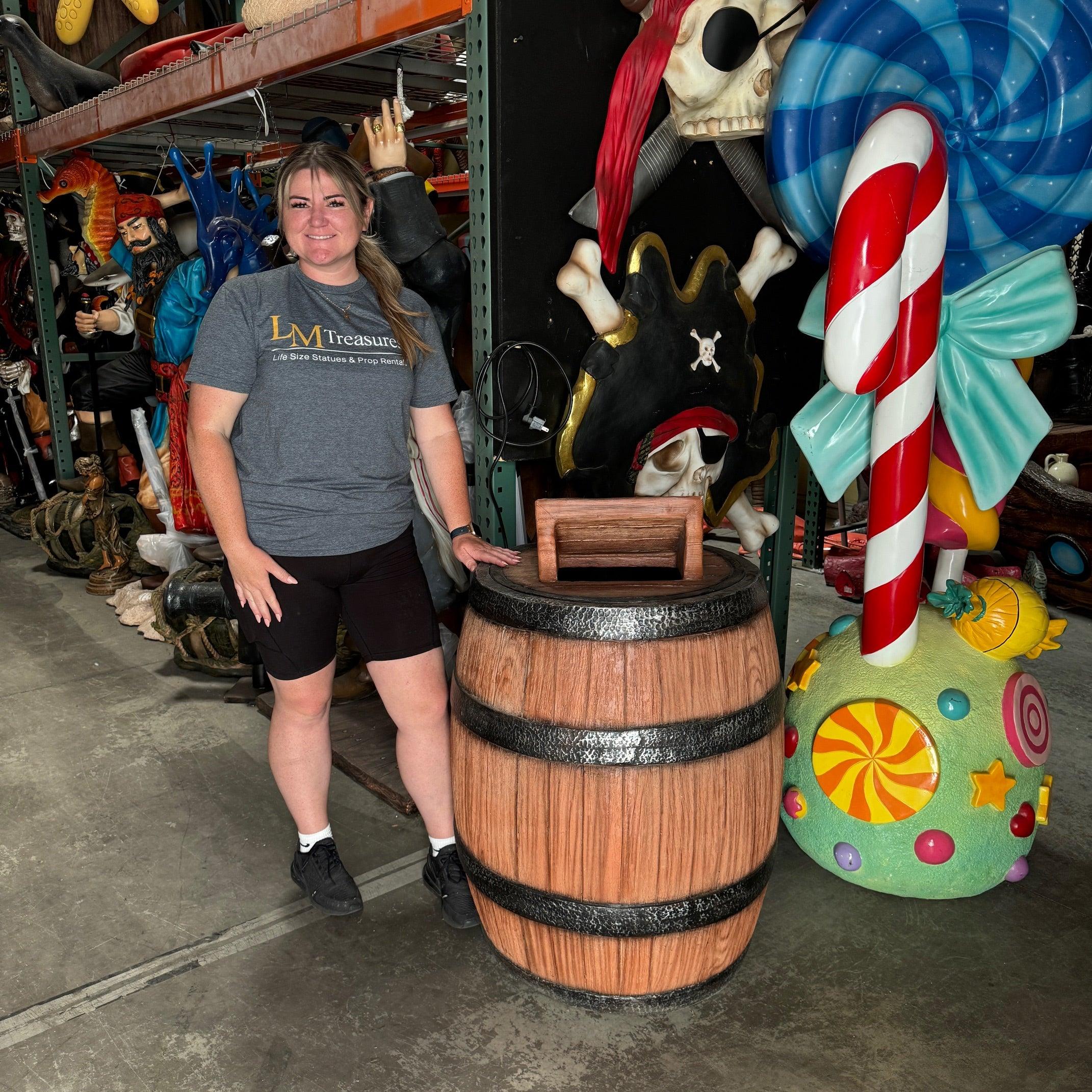 Barrel Trash Can Life Size Statue
