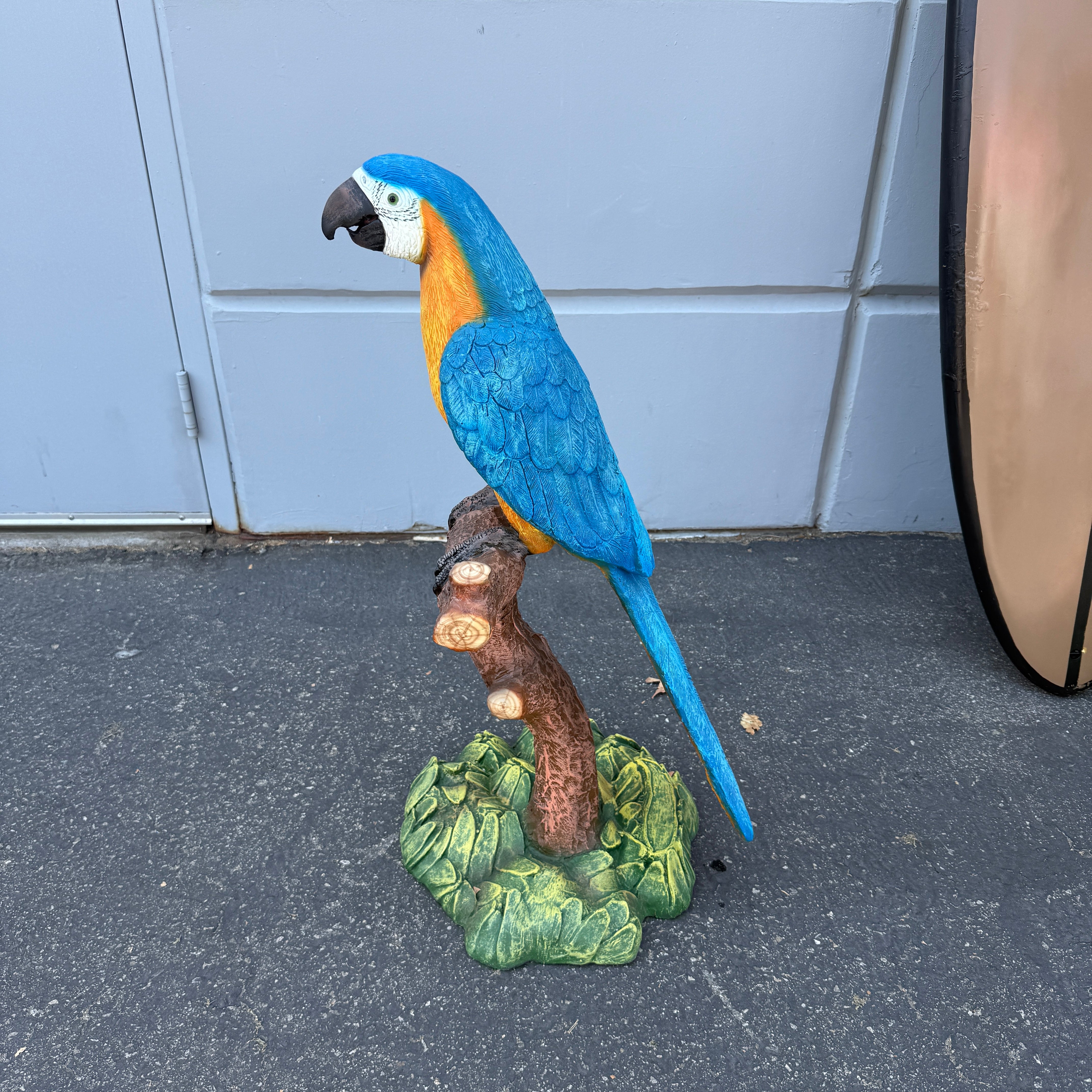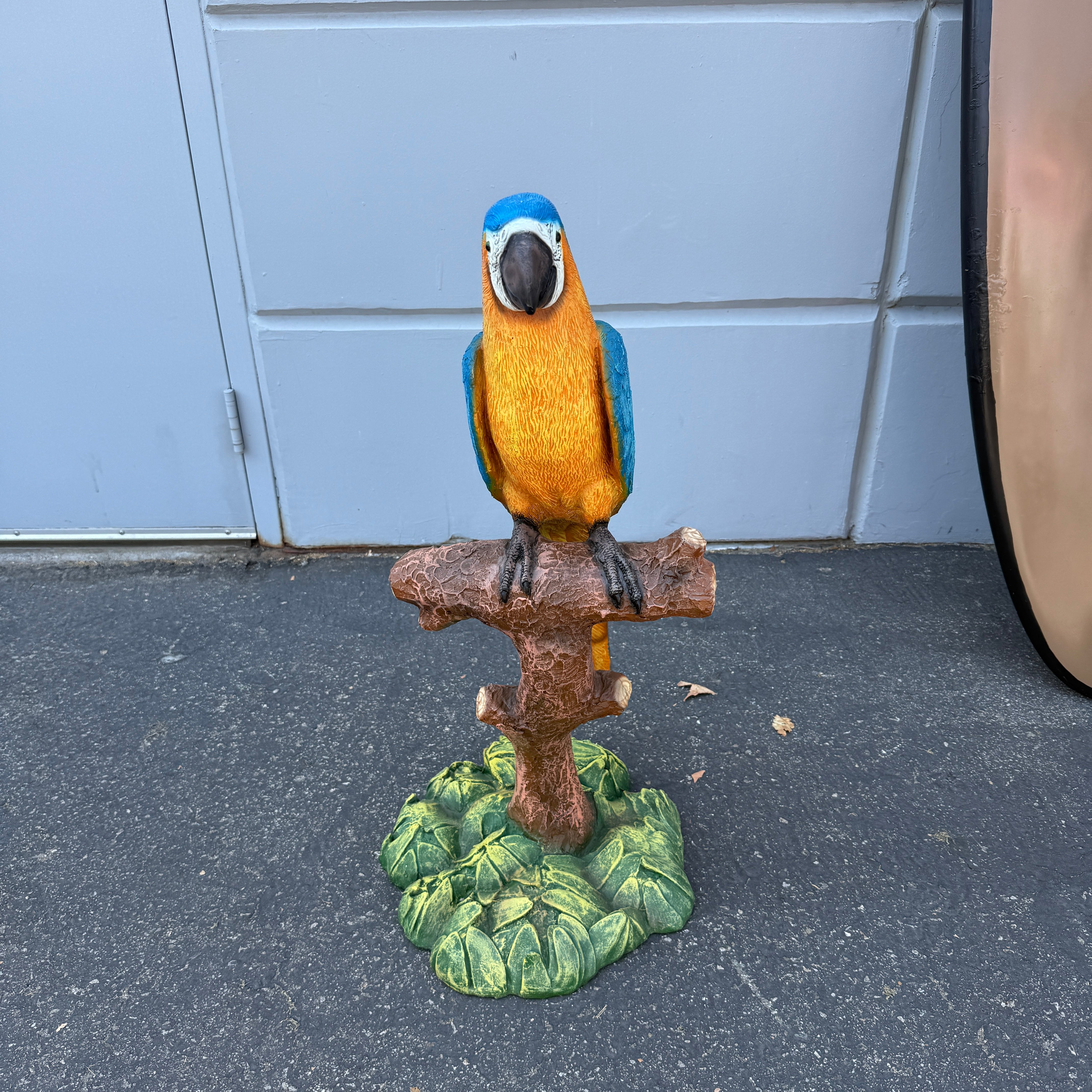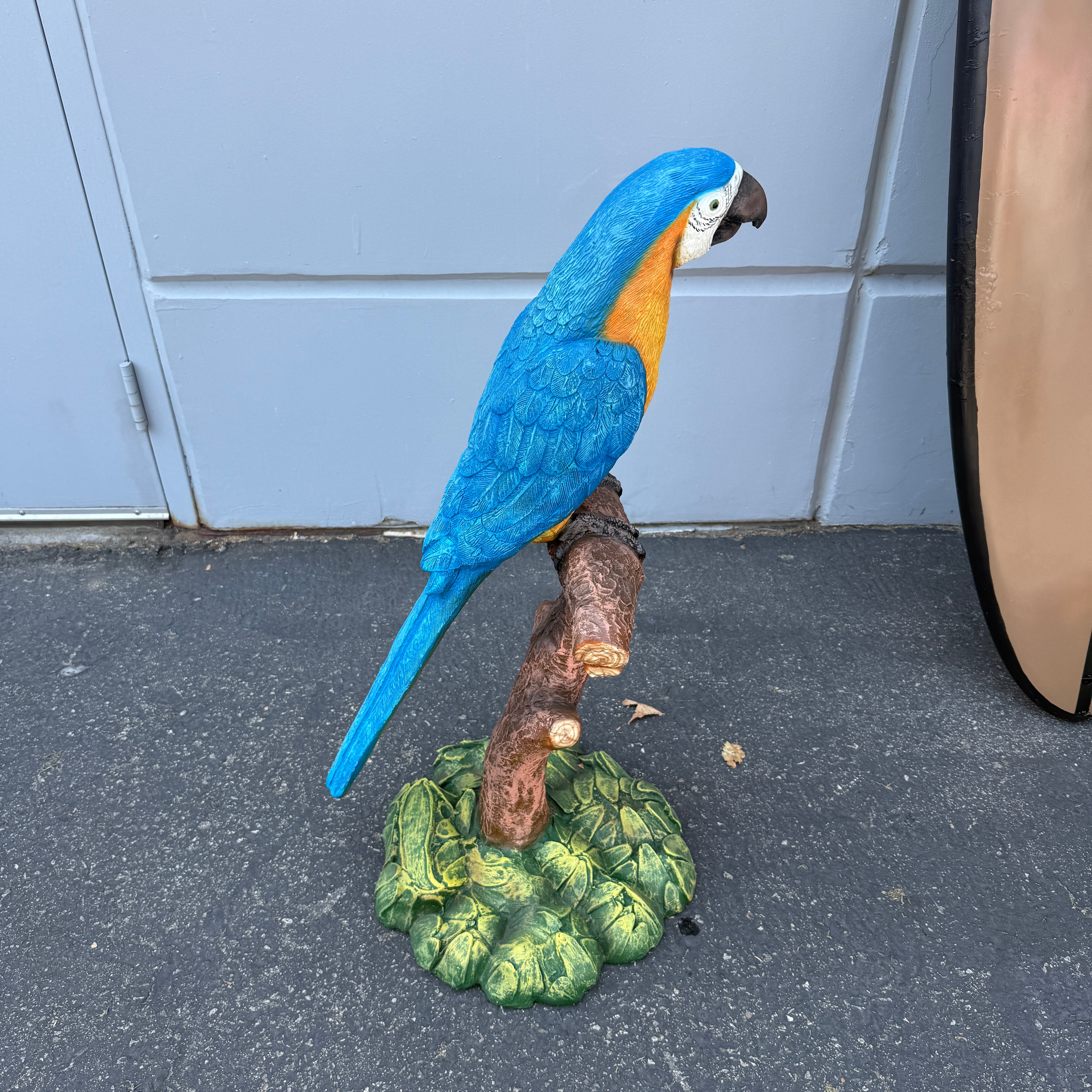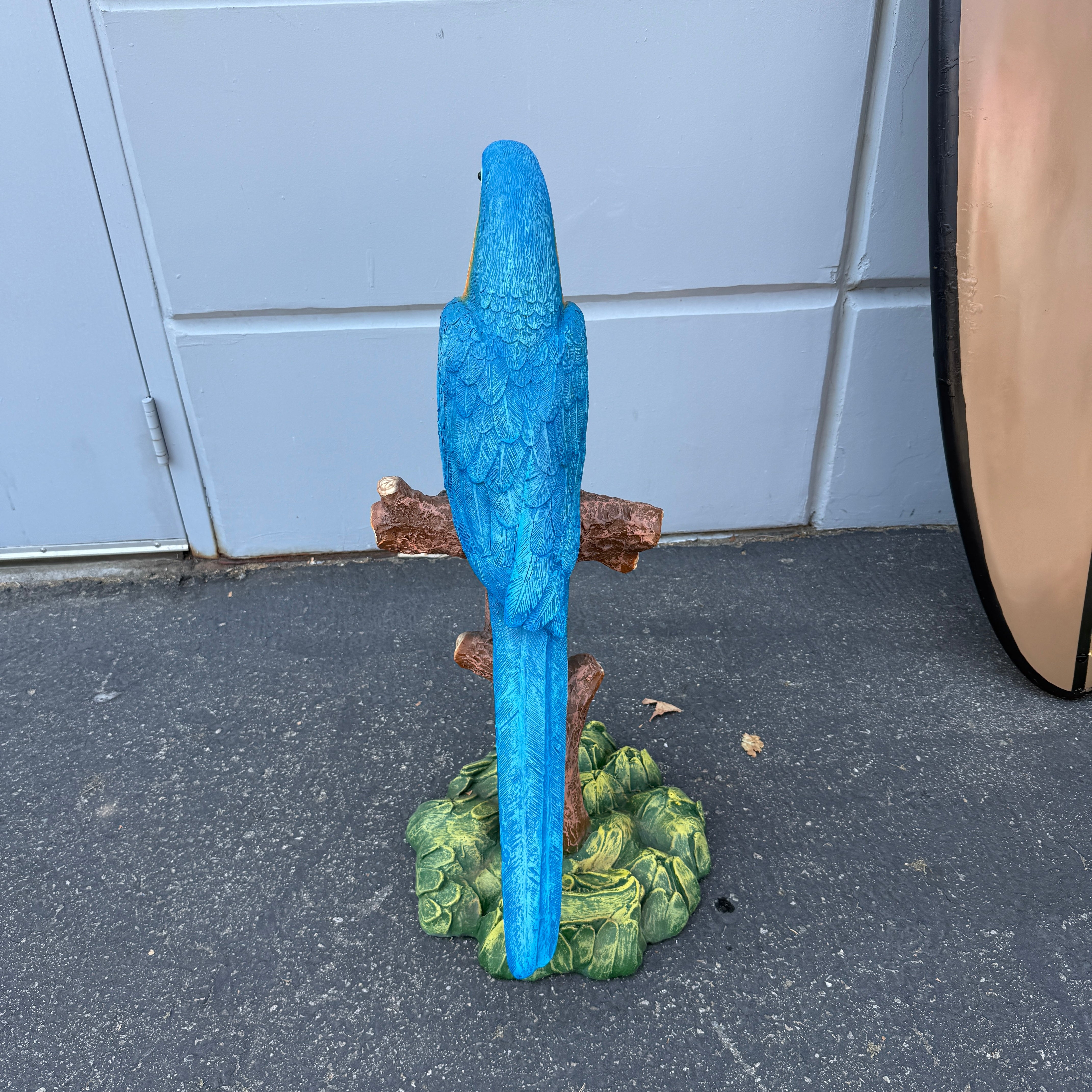 Blue Gold Macaw Parrot On Branch Life Size Statue
