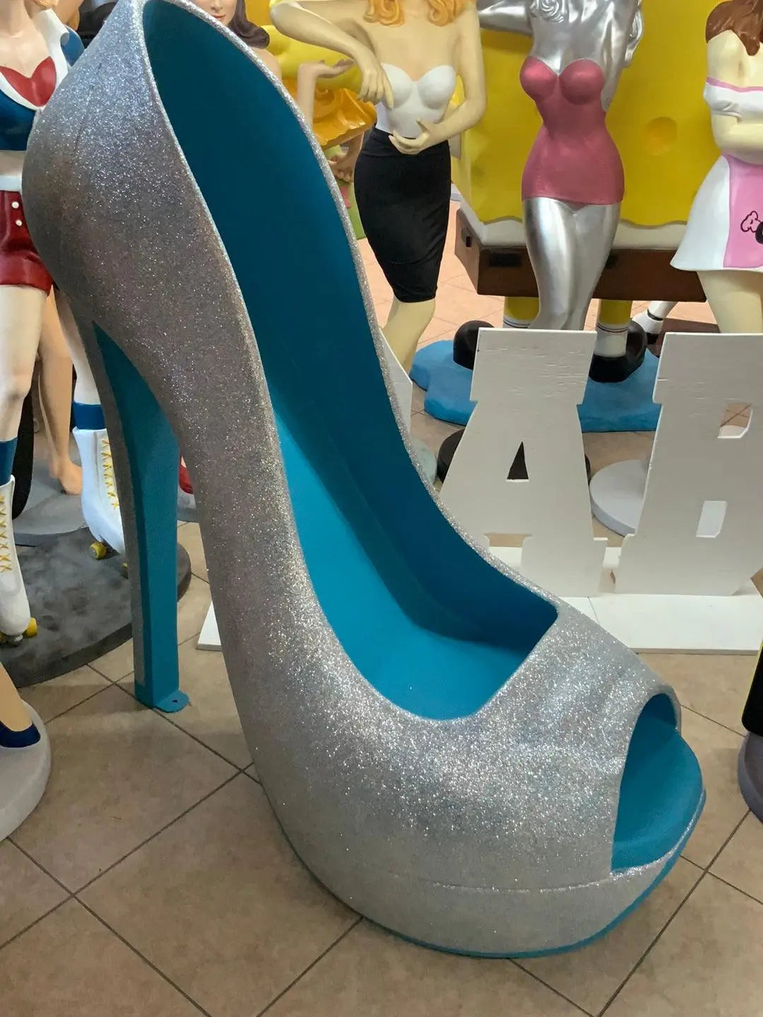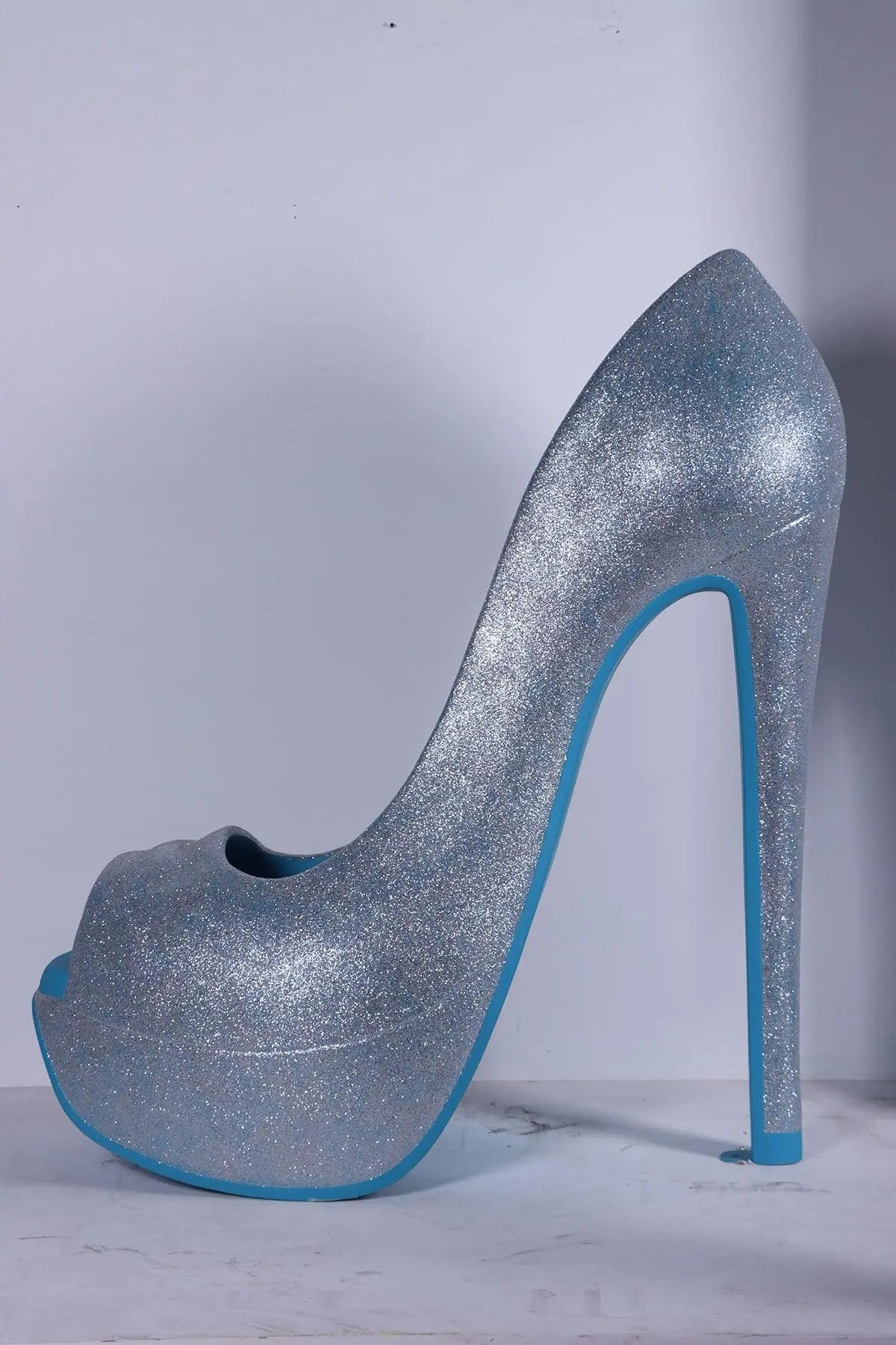 Blue Stiletto High Heel Shoe Over Sized Statue