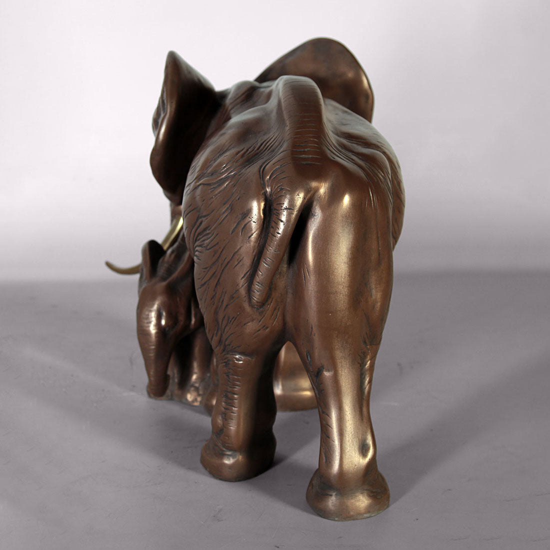 - This beautifully crafted Bronze Mother with Baby Elephant Table Top Statue exudes timeless charm while also symbolizing the importance of family and protection. With a stunning bronze finish, this statue is sure to add an elegant touch to any space. Perfect for any animal or elephant lover, it serves as a reminder of the enduring bond between mother and child.