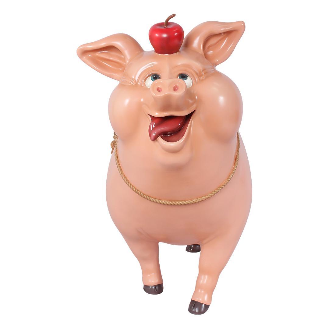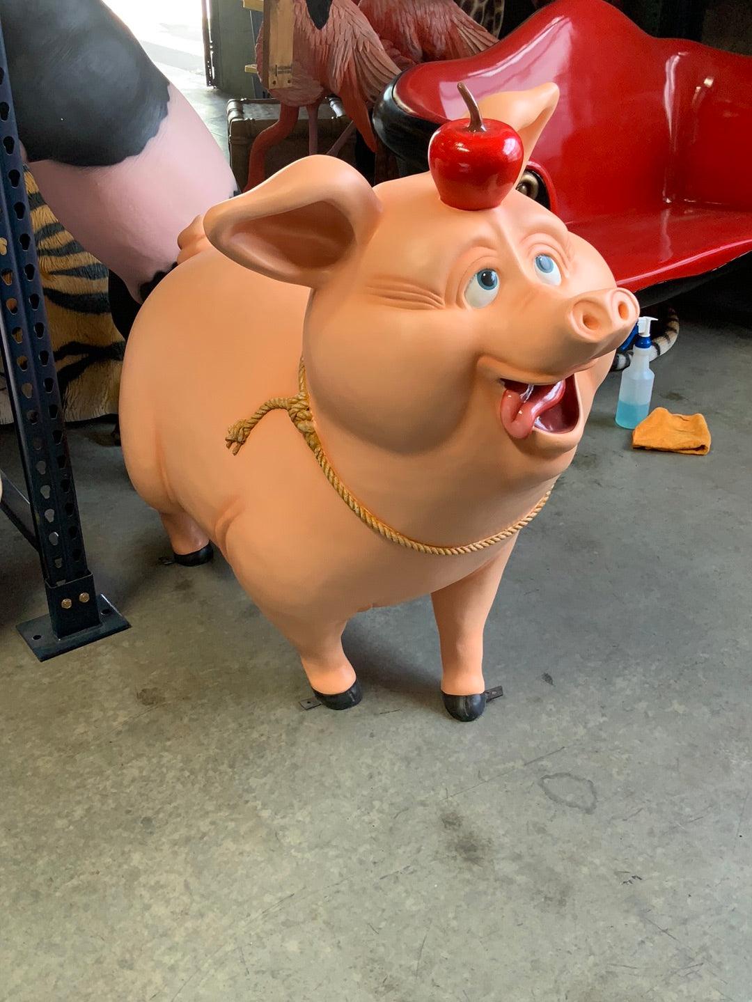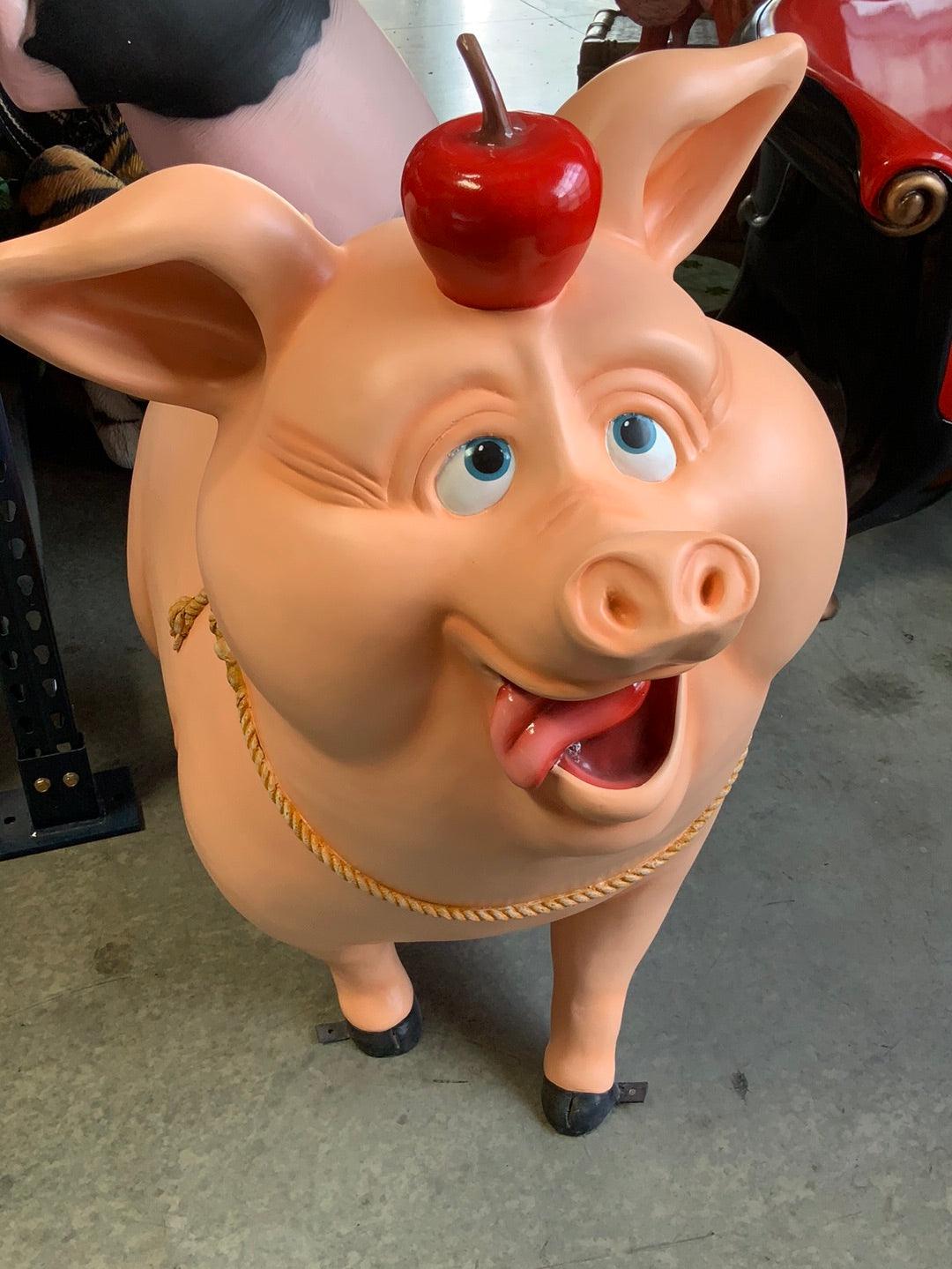• Get ready for a heaping helping of fun with our Life-Size Comic Pig With Apple Statue! This isn't just any pig! It's a vibrant, cartoon-inspired porker with a big personality and an even bigger smile, proudly holding a bright red apple. With its friendly eyes, a wide, happy snout, and adorably chubby body, this comic pig is bursting with playful charm and a fruity surprise.