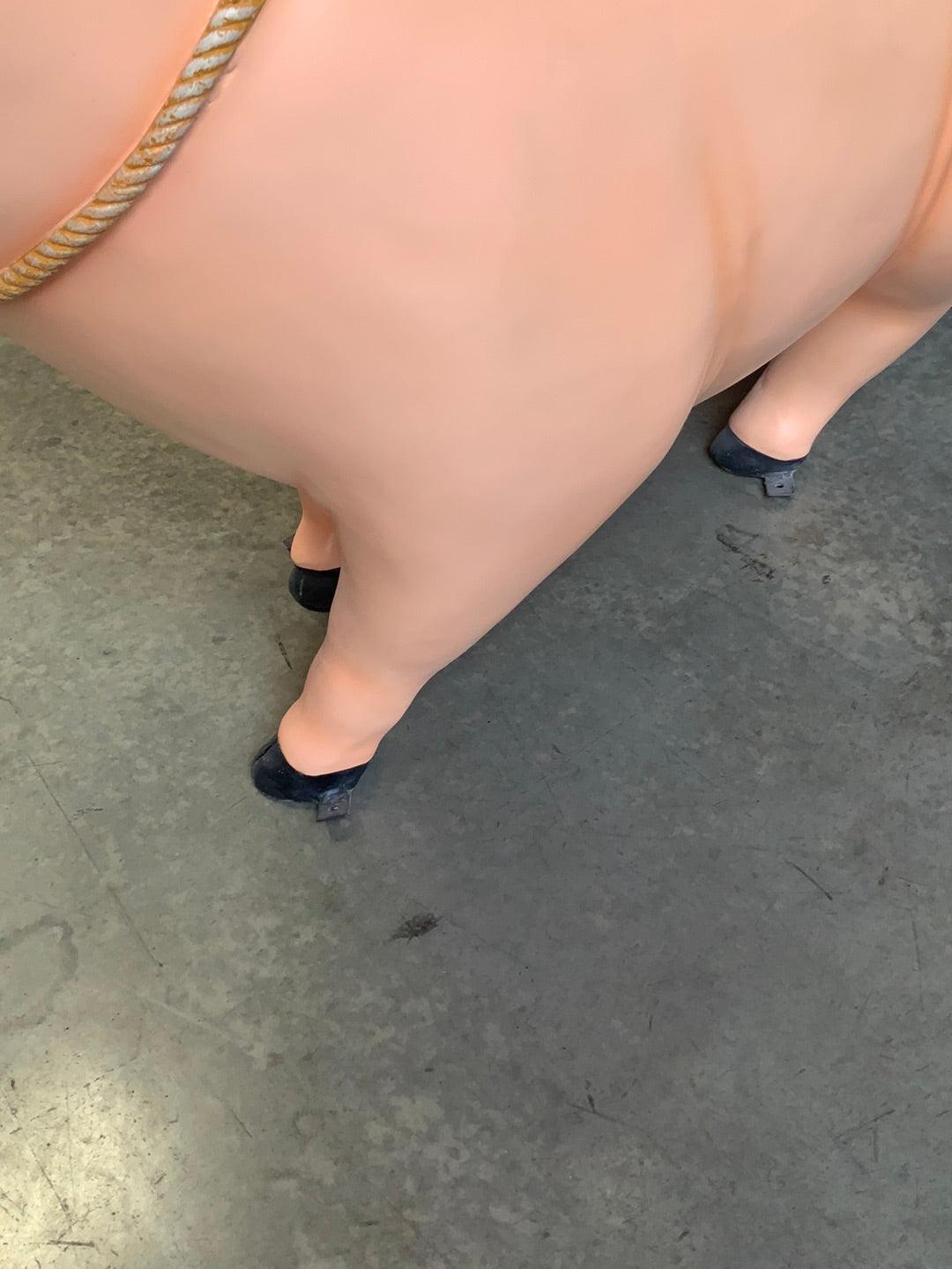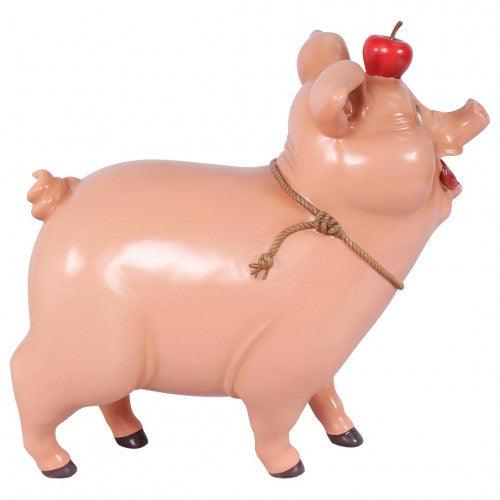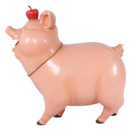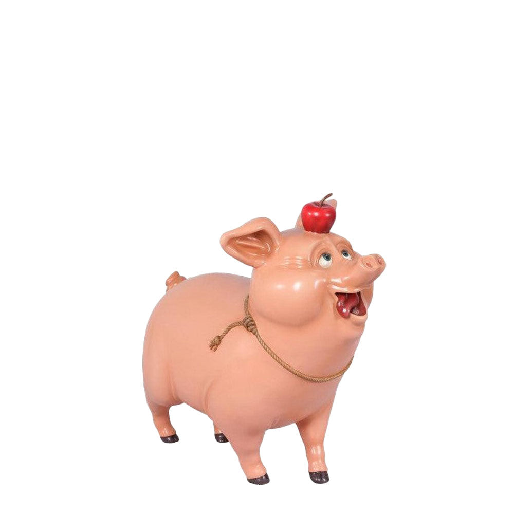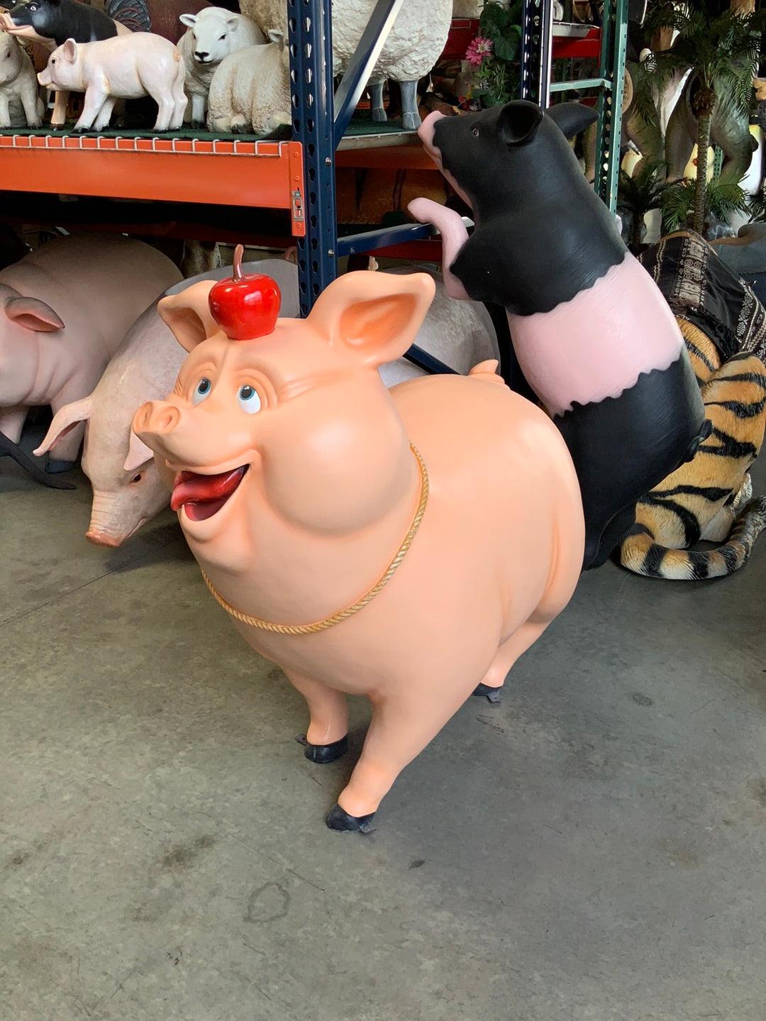 • Get ready for a heaping helping of fun with our Life-Size Comic Pig With Apple Statue! This isn't just any pig! It's a vibrant, cartoon-inspired porker with a big personality and an even bigger smile, proudly holding a bright red apple. With its friendly eyes, a wide, happy snout, and adorably chubby body, this comic pig is bursting with playful charm and a fruity surprise.