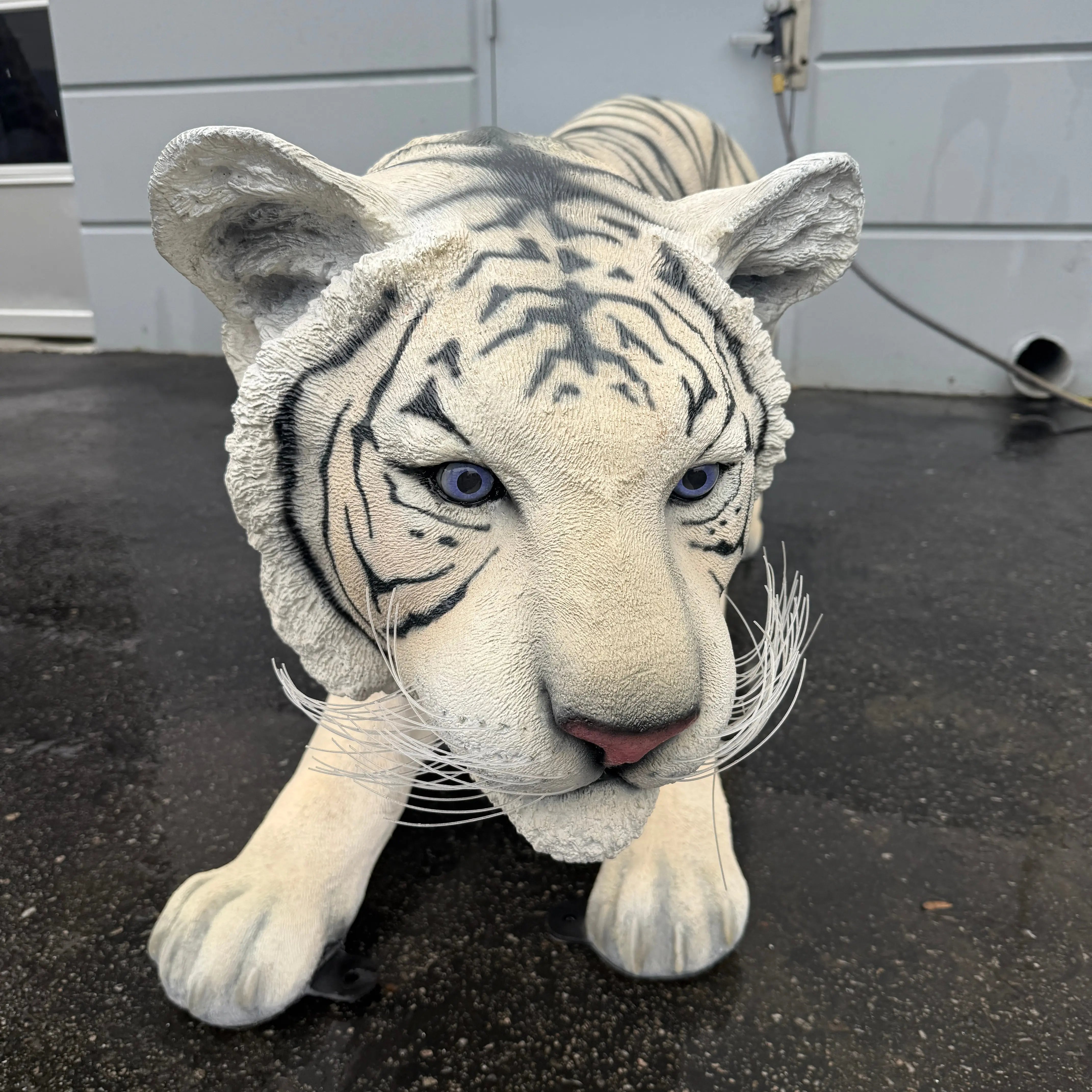 - Command awe with the sheer power and scale of this magnificent, life-size Crouching Siberian Tiger statue. Representing the Amur tiger, the largest of all cat species, this sculpture captures the animal's formidable presence in a moment of intense predatory focus. Poised low to the ground in a classic stalking crouch, its massive musculature is held taut, ready for action.