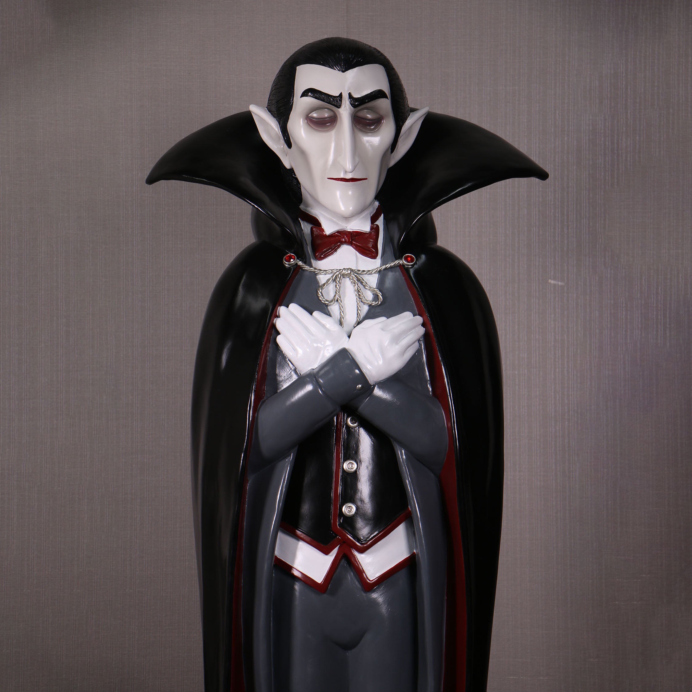 - Meet the Count himself—caught in an eternal slumber while standing! This life size Dracula Vampire Statue brings darkly comedic charm to your Halloween collection. With his dramatic pose and detailed craftsmanship, he's the perfect conversation starter for guests brave enough to admire him. Just remember: don't disturb the undead! For the ultimate haunted display, pair it with any of our other Halloween statues and watch your decor come to life with thrilling effect.