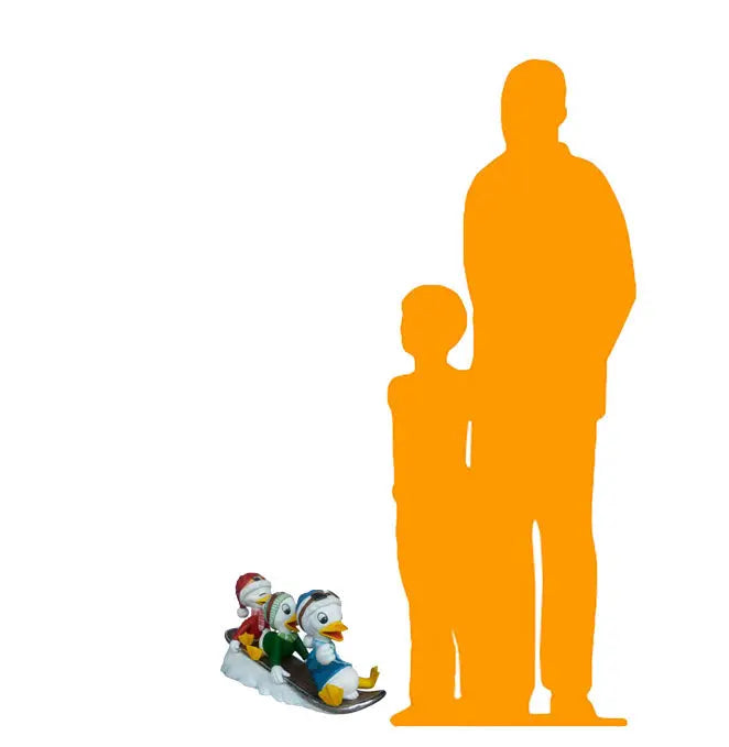 Ducklings On Snowboard Life Size Statue