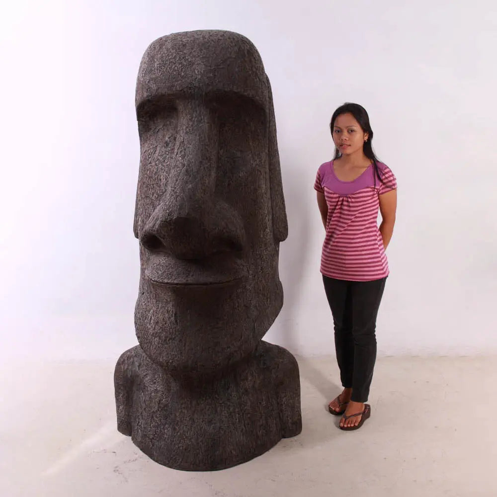 • Enhance your home or garden decor with this Easter Island Moai Head Bust Statue. This concrete Chile-inspired prop display is a must-have piece for any collector who is looking to add an exotic and cultural vibe to their space. The Moai Head statue is sprayed in a stone finish to look just like the original carving.