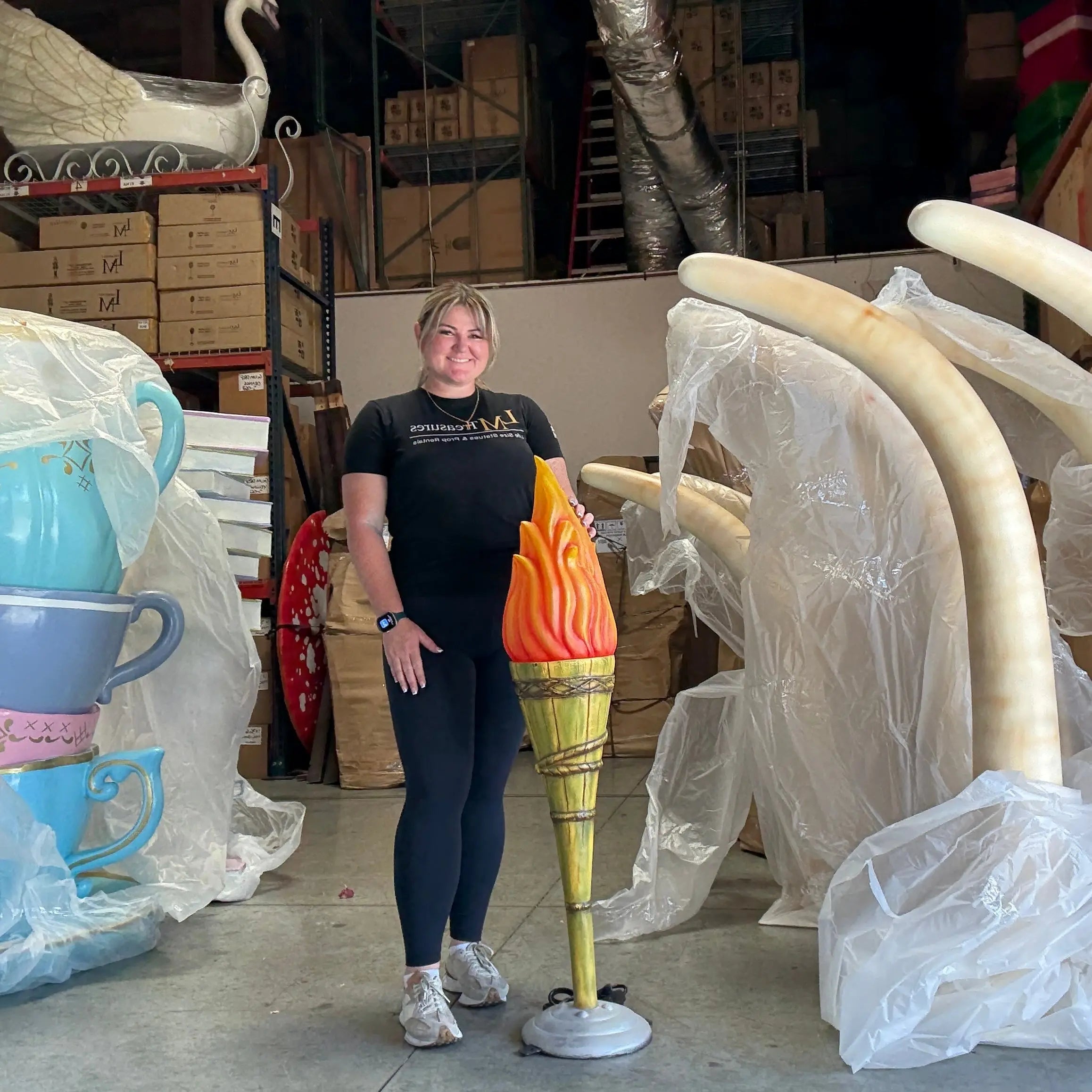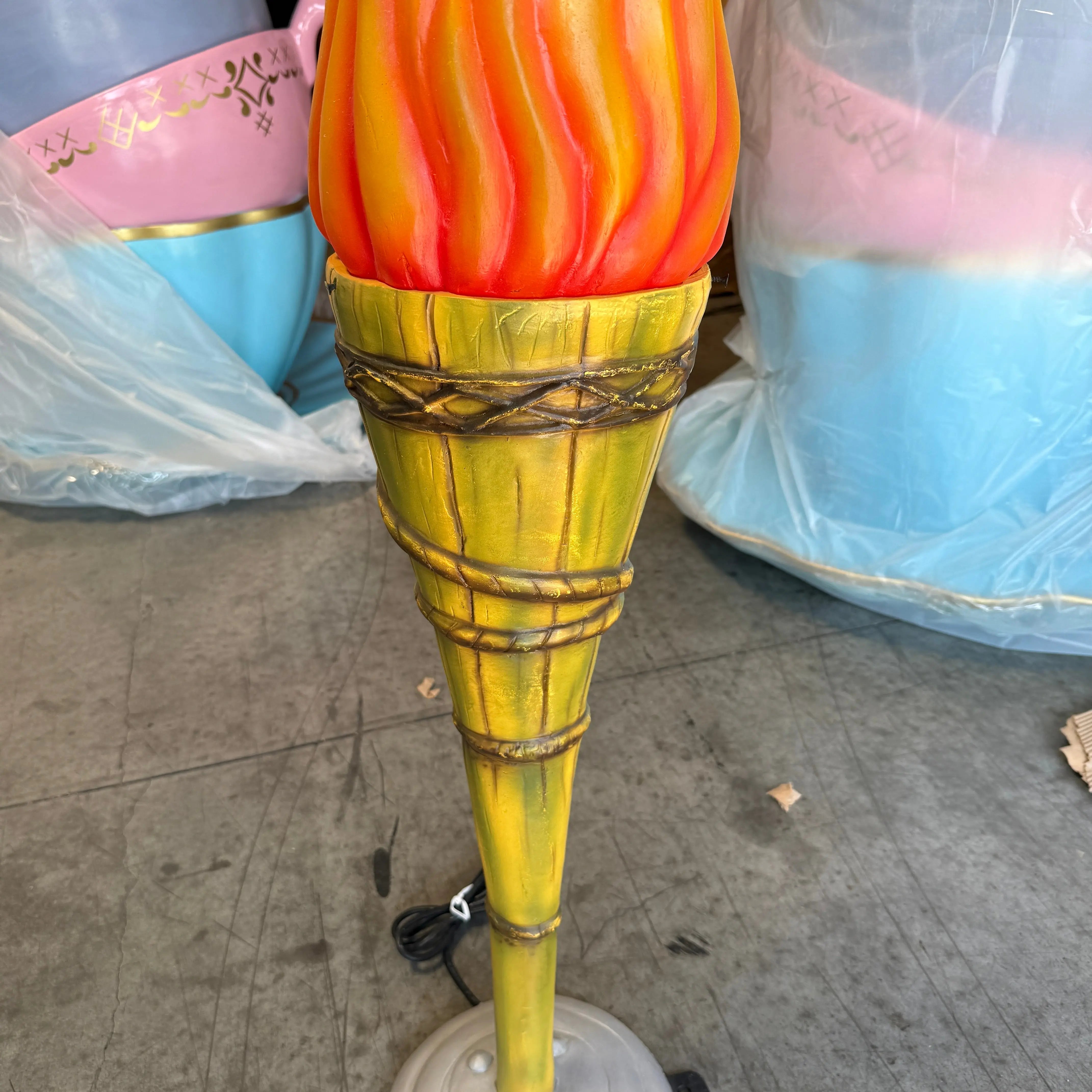 • Add a touch of warm ambiance to your space with this 4-foot fire torch statue. While the bulb is not included, once added and plugged in, it creates the look of a real fire without the danger.
