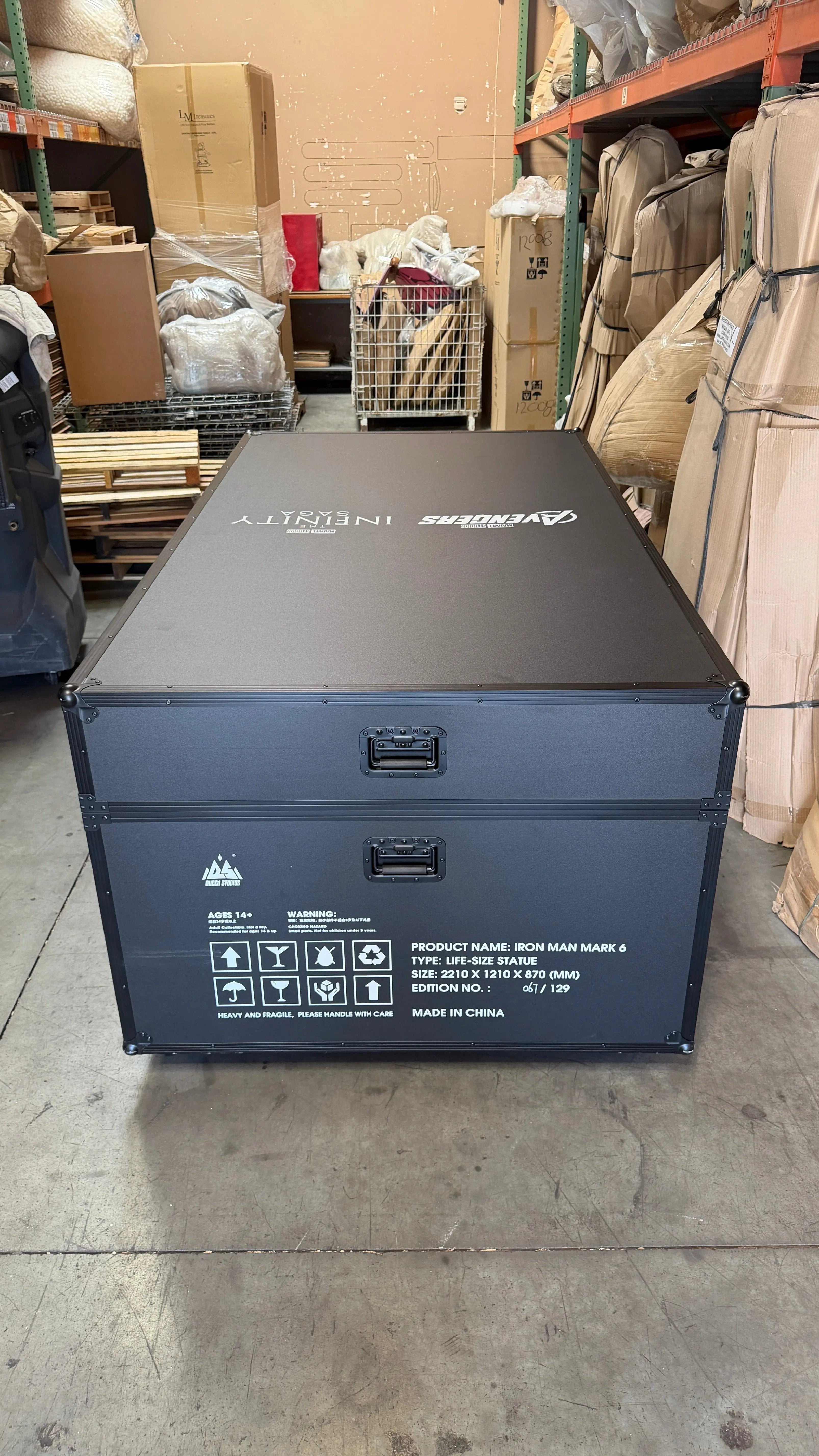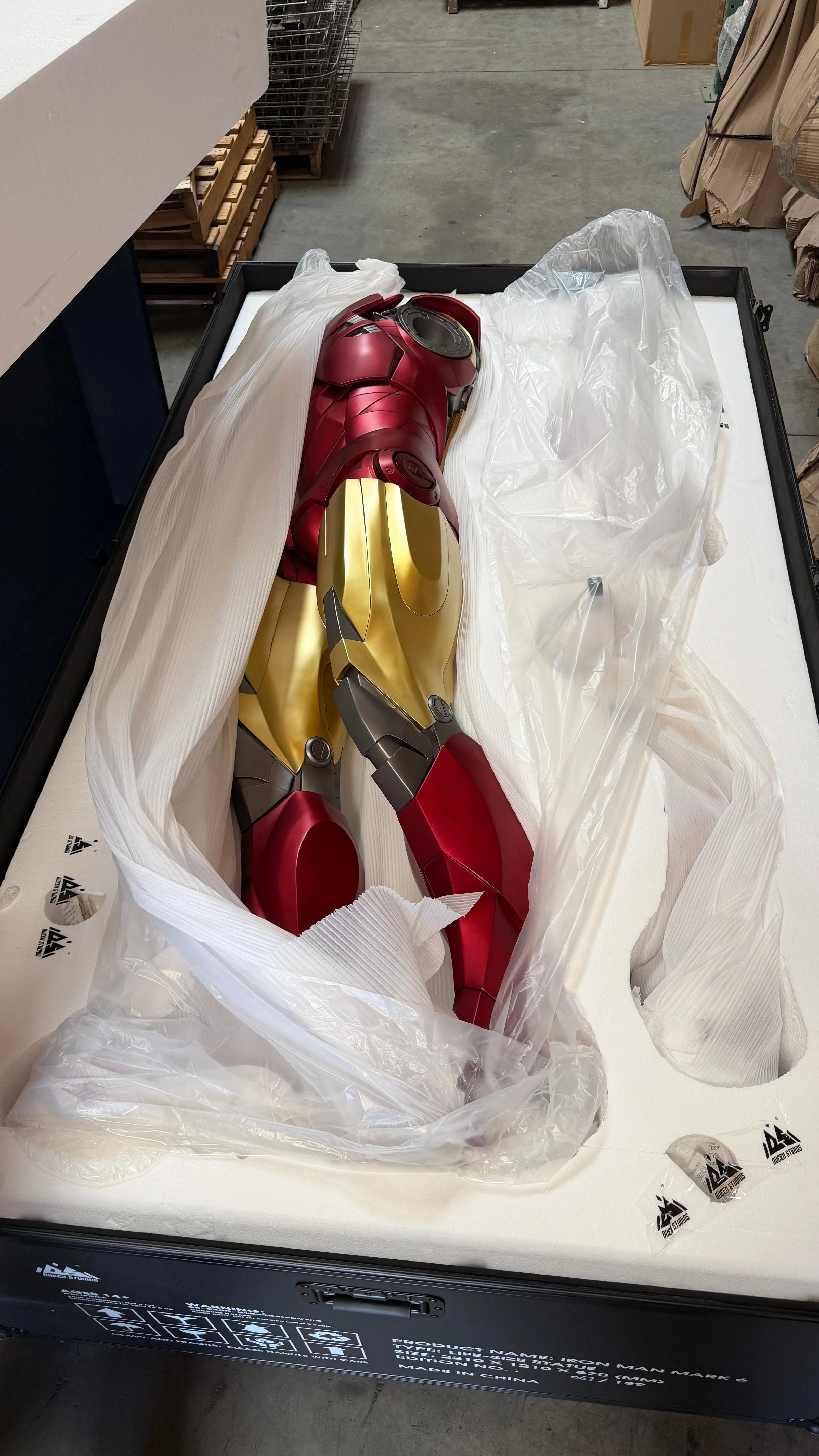 - Inspired by the suit-up scene from Marvel's The Avengers (2012), the life-size Iron Man Mark 6 1/1 Statue is a testament to Tony Stark’s original design and Queen Studio’s craftsmanship. Standing at 210cm tall, the Mark 6 armor is faithfully recreated, capturing its sleek design and intricate detailing. To bring the statue to life, the team have utilized internal lighting with stunning results. The glow of the Arc Reactor and the flicker of the eyes create a visual spectacle that captures the essence of Iron Man.