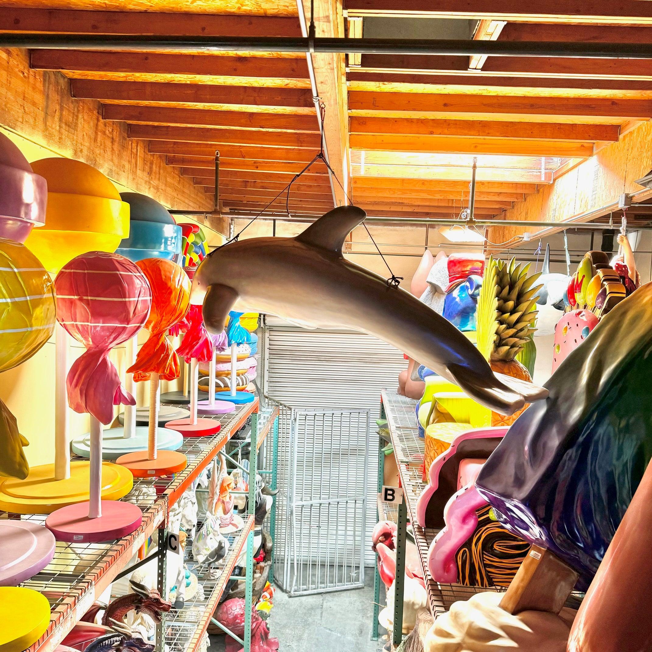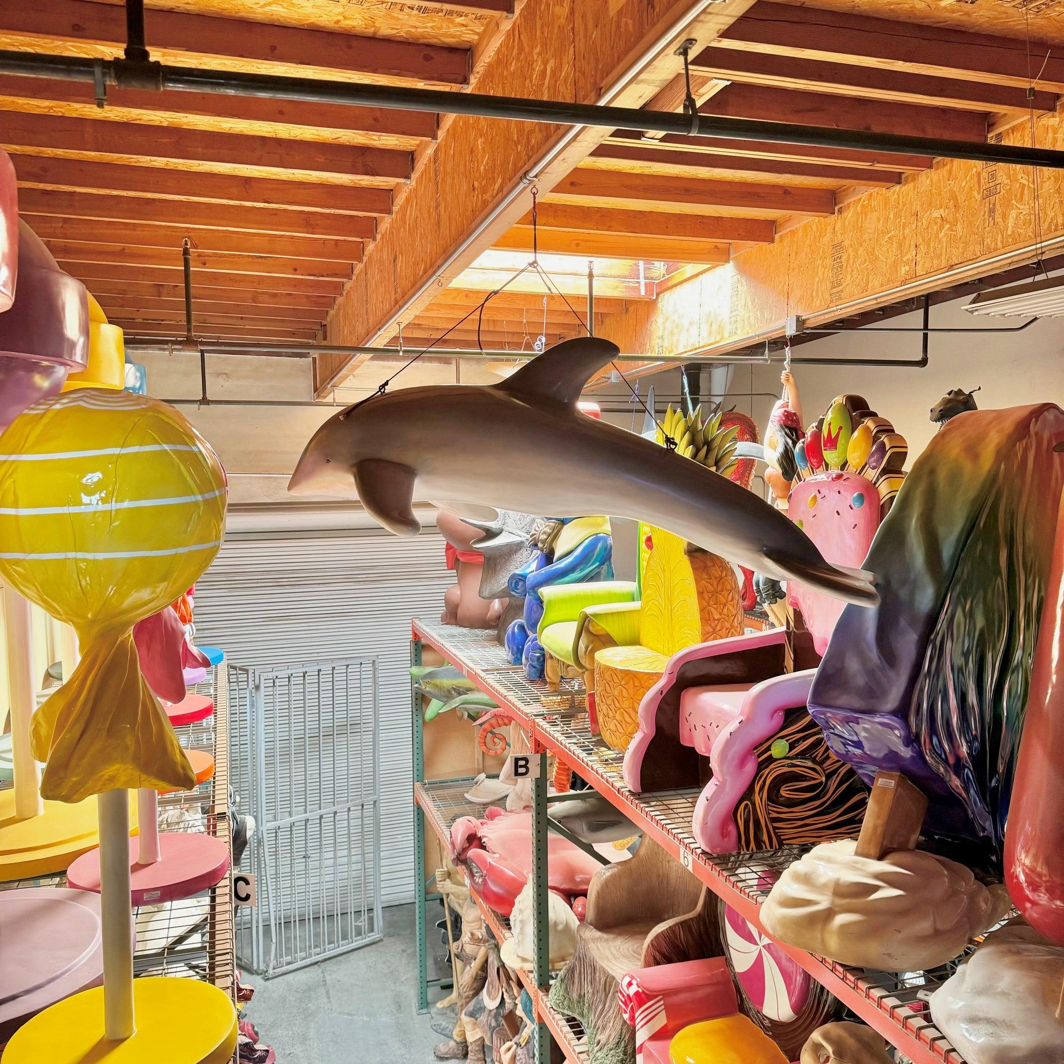 - From under the sea and on to land this miraculous Dolphin Statue is sure to make a splash or rock the boat! Watch your guest be washed away at your next Luau or Under the Sea Beach event. Pair this dolphin with a Life Size Great White Shark, a school of fish, or even a giant Octopus!