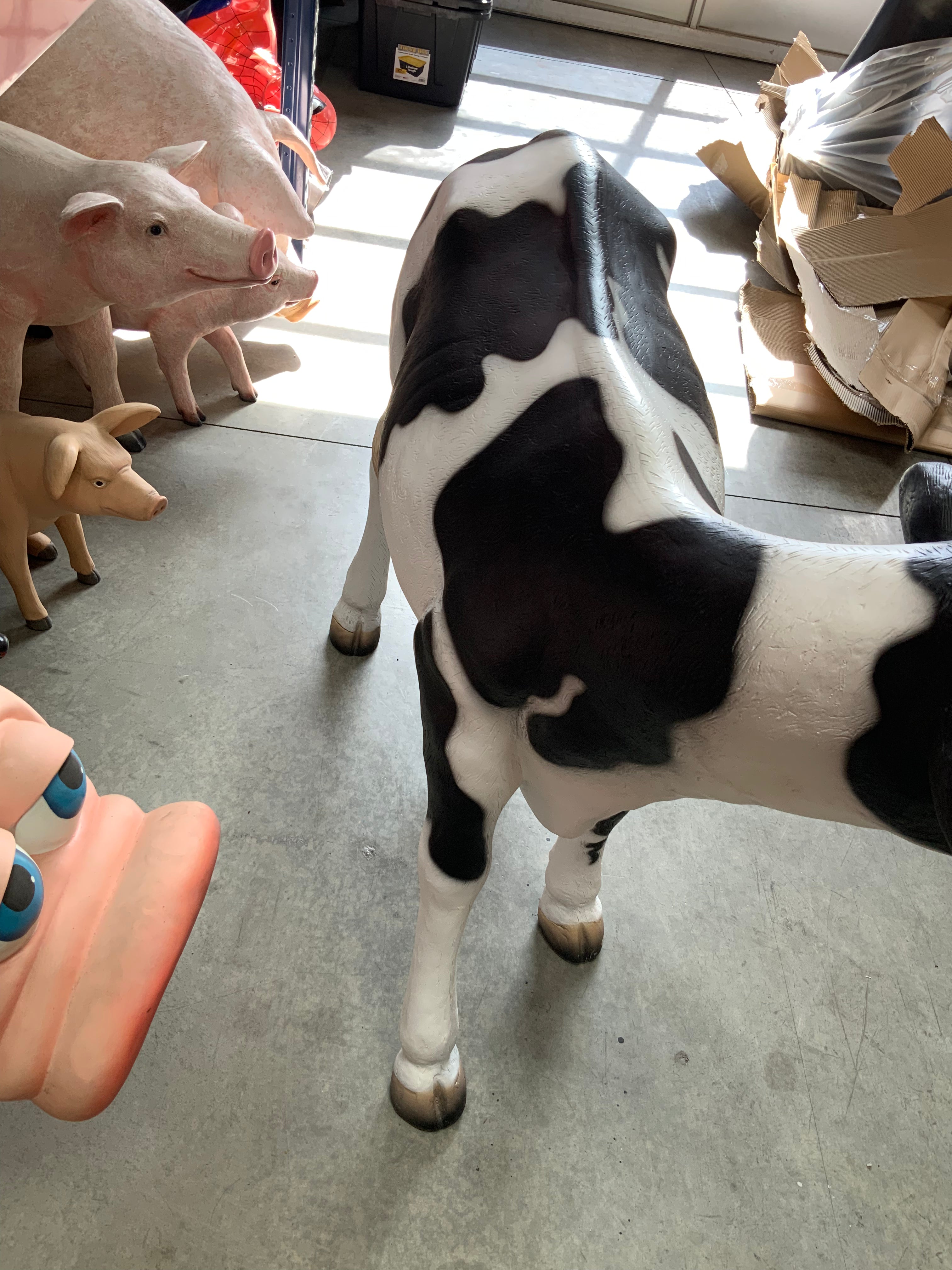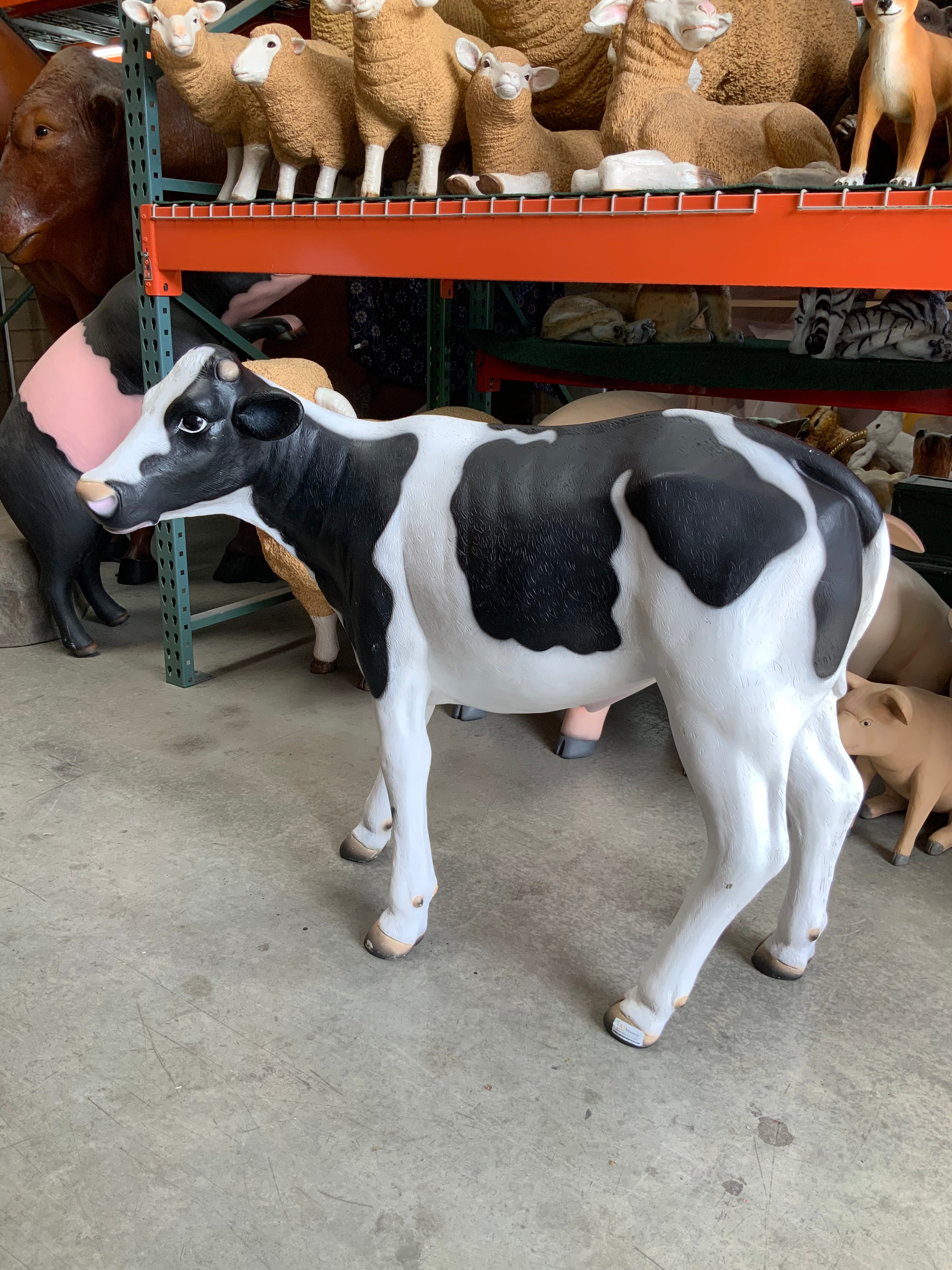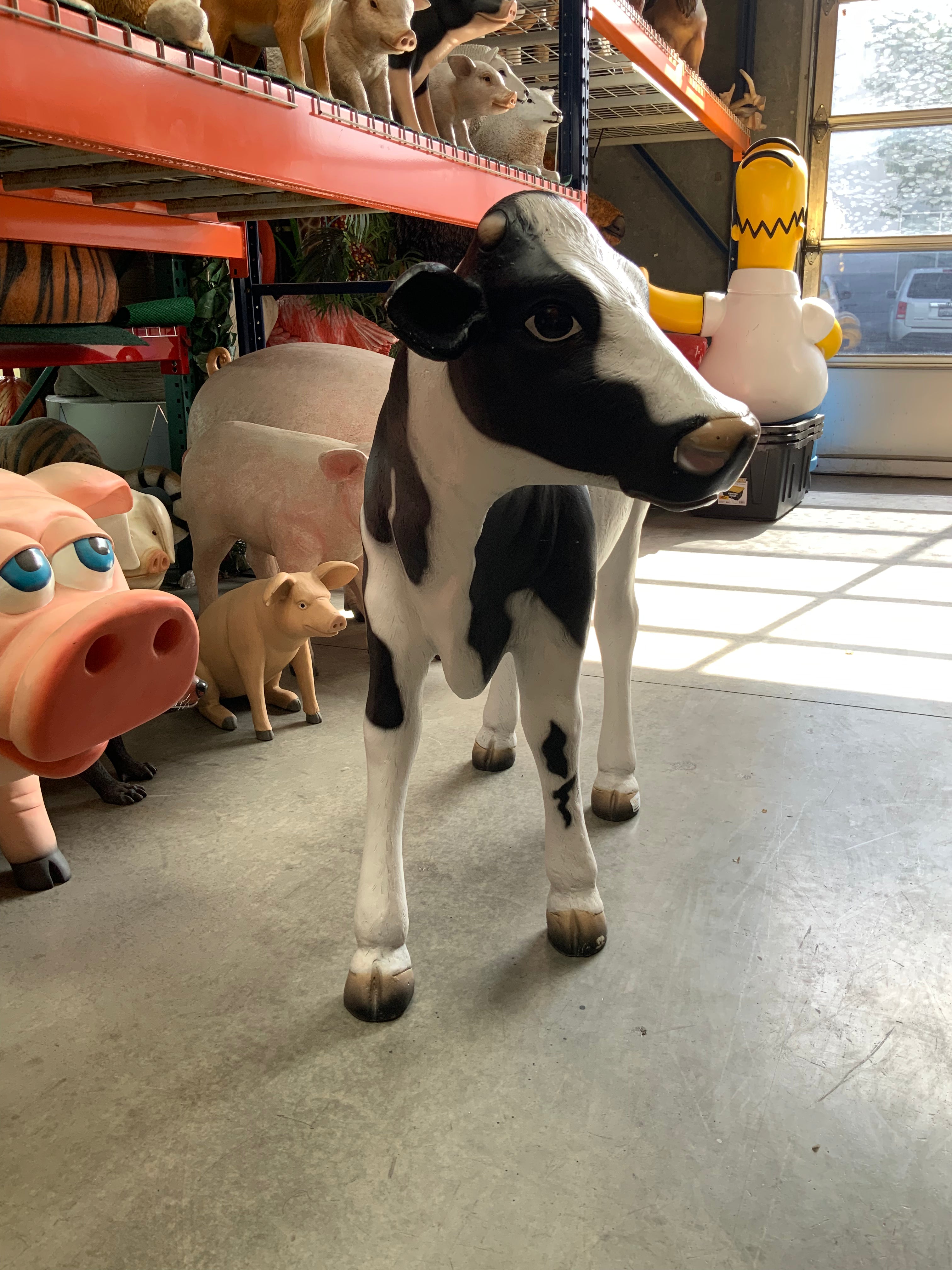- Bring a touch of countryside charm to your space with this life size Large Baby Holstein Cow Calf statue. Its playful presence adds warmth and whimsy, perfect for creating a cozy rural vibe. Pair it with a larger Holstein statue to complete your friendly little herd and watch your home come alive with farmyard fun.
