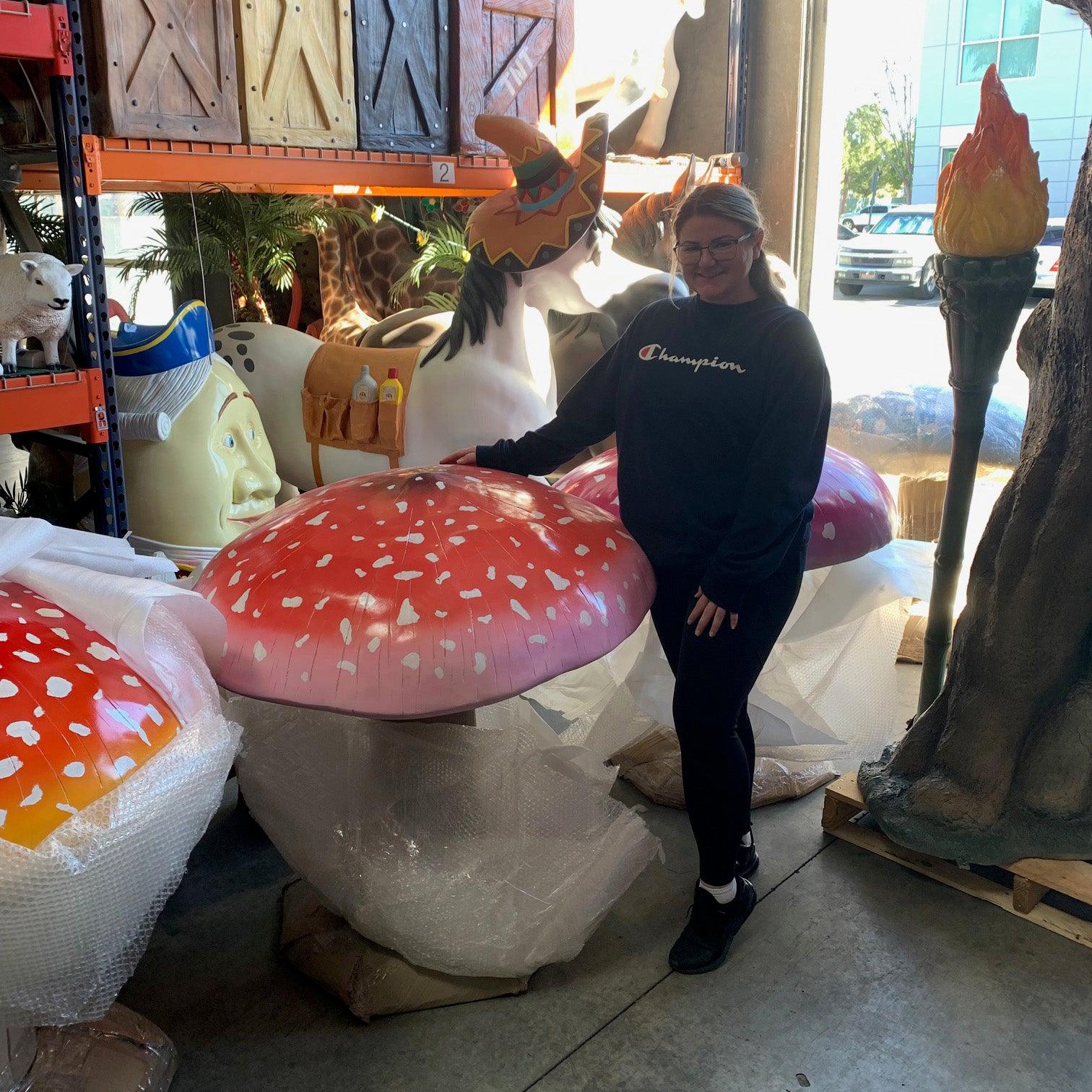 - Bring a magical touch to your garden with the Large Mushroom Over Sized Statue. Its bright, playful design makes it the perfect centerpiece for fairy-themed parties or wonderland events. Ideal for fun photo ops, this oversized mushroom adds charm and color to any setting. Mix and match with our variety of sizes and colorful mushrooms to create your own enchanted forest.