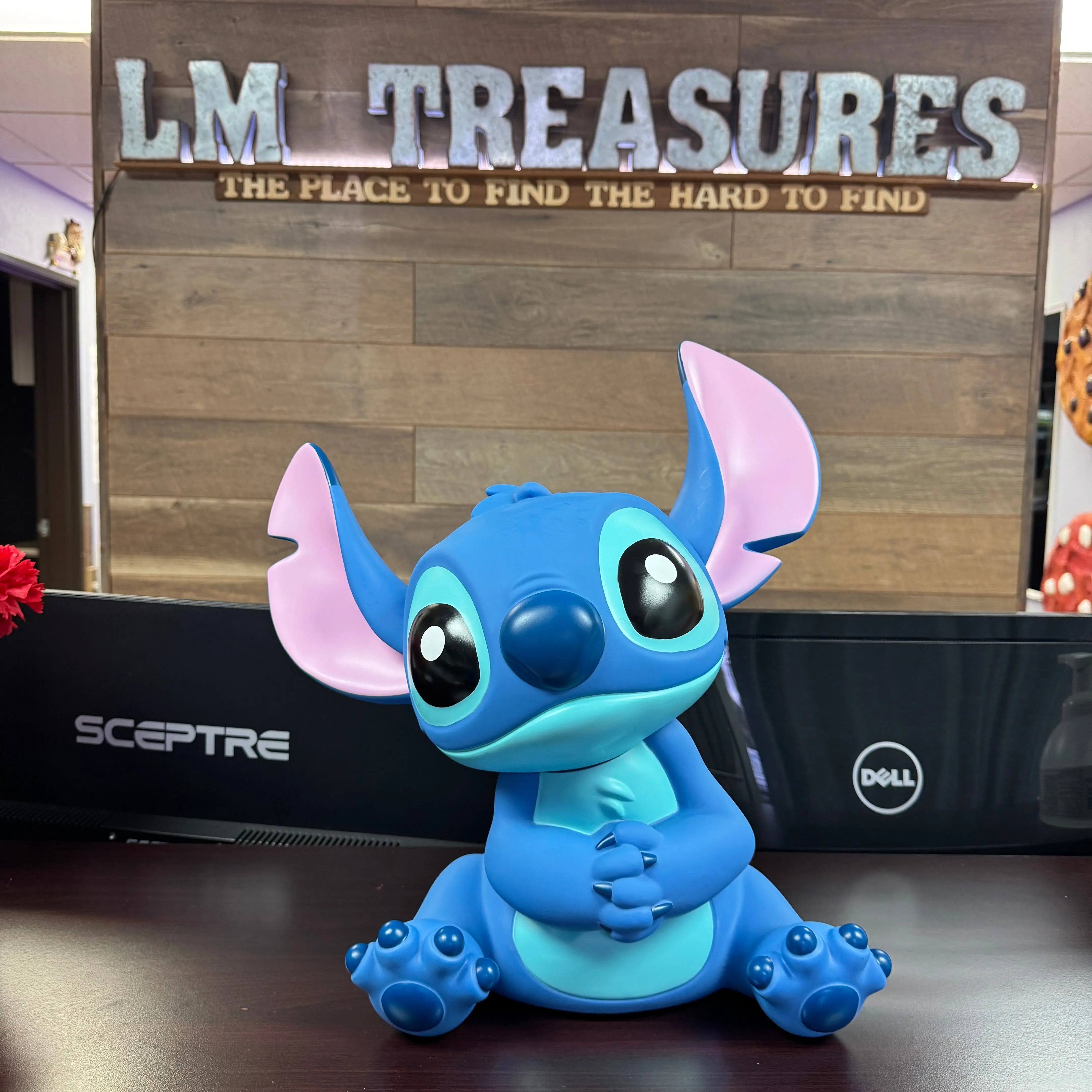 - Aloha! Bring a little mischievous charm to your savings with this adorable Lilo & Stitch Sitting Stitch Piggy Bank Statue! Crafted with vibrant colors and delightful detail, this figurine captures Experiment 626 in a sweet, seated pose, ready to guard your spare change.