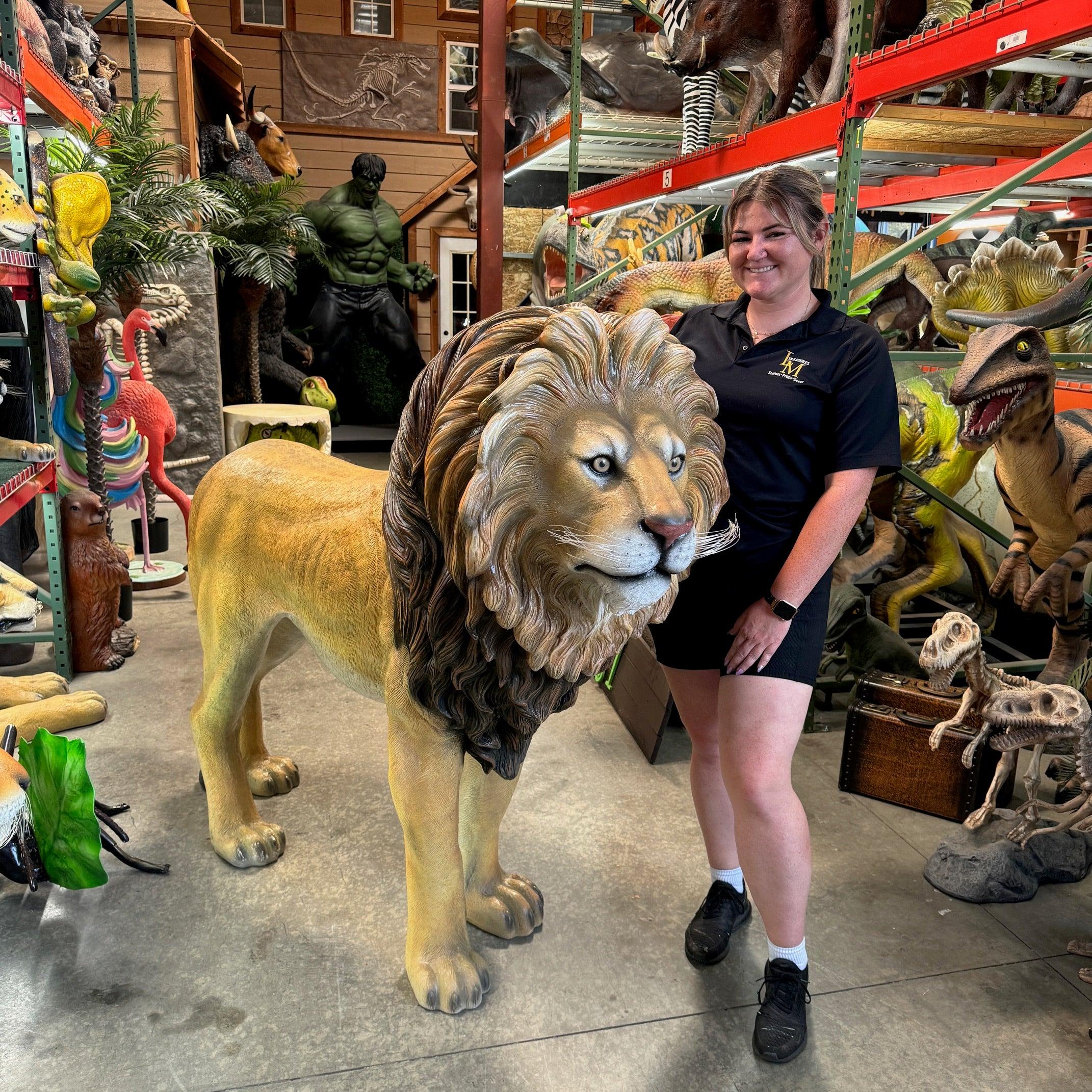 - Command respect and inspire awe with this truly magnificent, life-size statue embodying the spirit of the Lion King. The undisputed ruler of the savanna. This sculpture is a breathtaking statement of power, courage, and natural majesty, designed to be the centerpiece of any grand setting. Accurately replicates the impressive size and powerful stature of a full-grown adult male lion, creating an unparalleled visual impact.