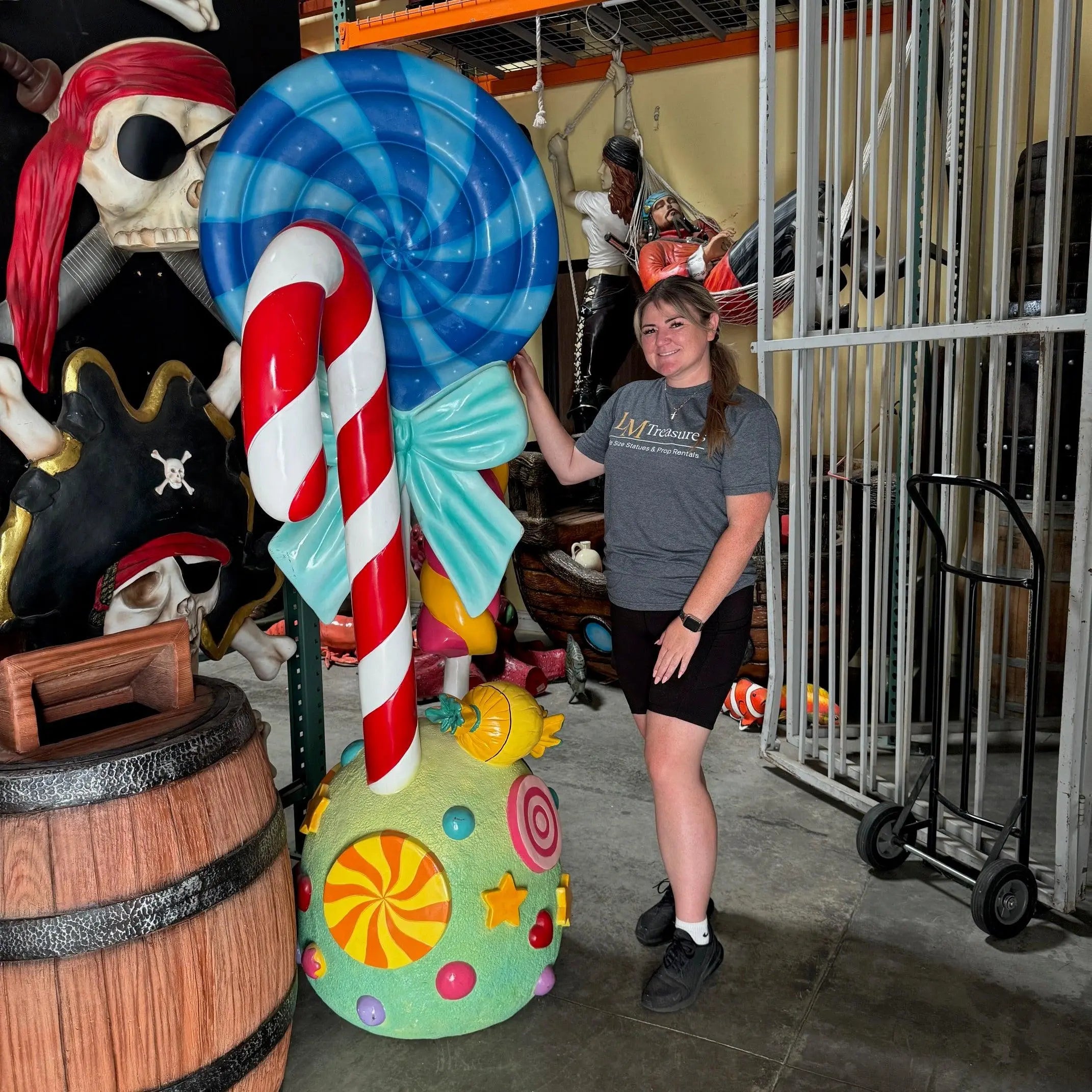 - This delicious brightly colored Lollipop statue will pull candy lovers from miles away in every direction! Take your candy shop or Wonka party to the next level by adding Giant Candy Statues for the ultimate Candy Land experience!