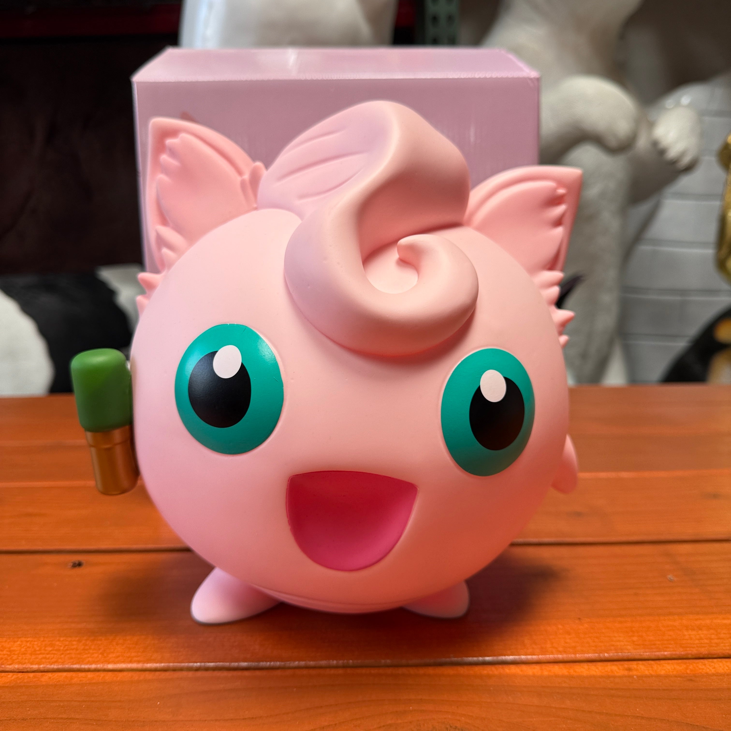 - Add a note of adorable serenity and playful charm to your home or office with this captivating Jigglypuff statue. Let its charming presence remind you of the simple joys and delightful surprises that await in the harmonious world of Pokémon!