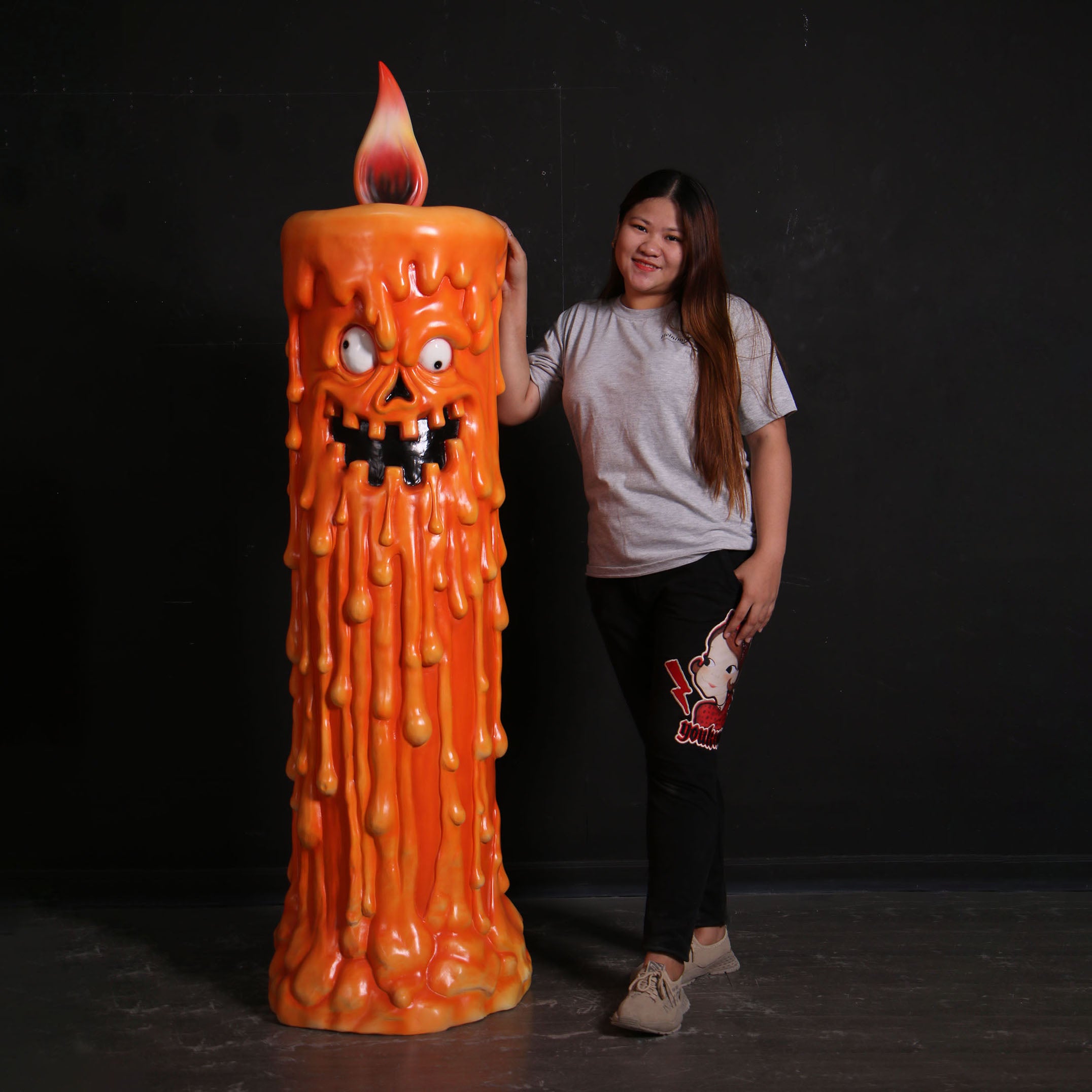 - Bring spooky flair to your Halloween setup with the Pumpkin Candle Life Size Statue. Ideal for eerie and gothic-themed spaces, this striking figure is sure to captivate and impress your guests. For the ultimate haunted display, pair it with any of our other Halloween statues and watch your decor come to life with thrilling effect.