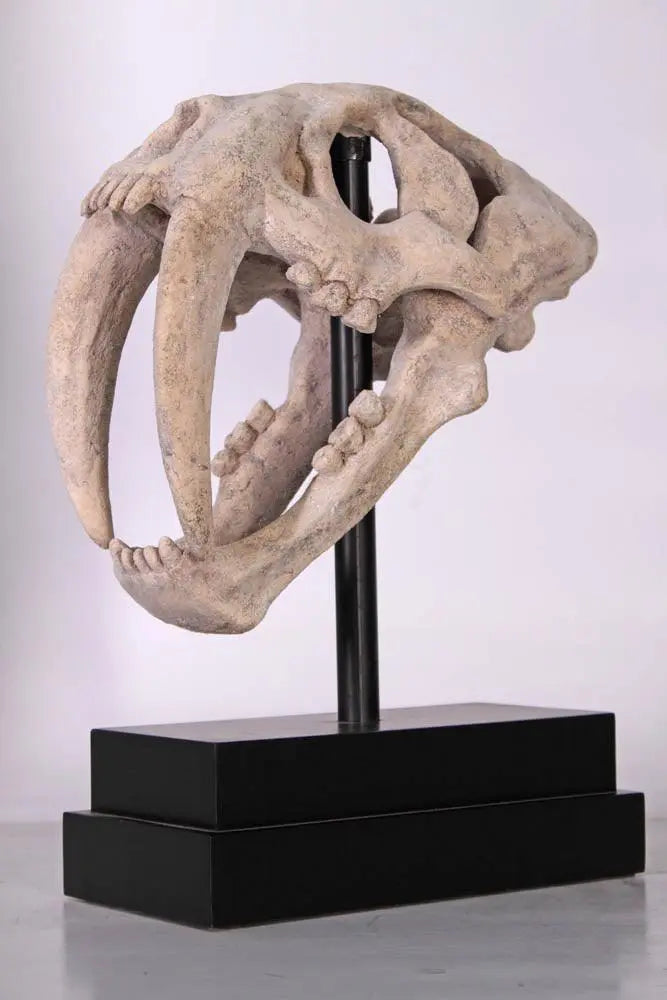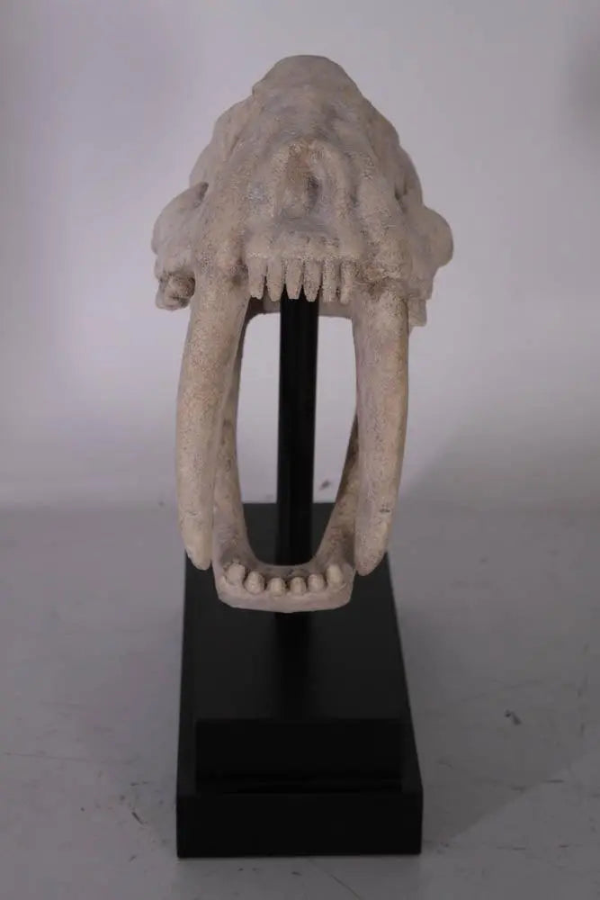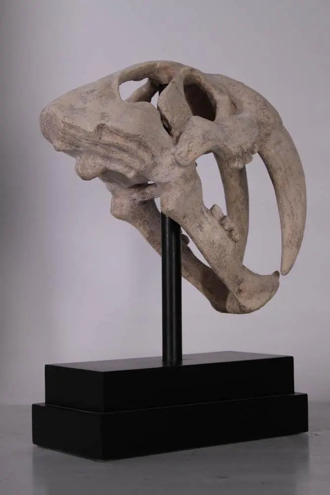 - Make a bold and prehistoric statement with our Saber Tooth Tiger Skull Life Size Statue. This impressive, life-sized replica of a Smilodon skull is guaranteed to be a unique and attention-grabbing addition to any collection or display. The iconic saber teeth immediately draw the eye. This sparks curiosity and conversation about the incredible creatures that roamed the Earth during the Ice Age. Perfect for themed rooms, educational settings, or as a striking centerpiece for any enthusiast of prehistoric life.