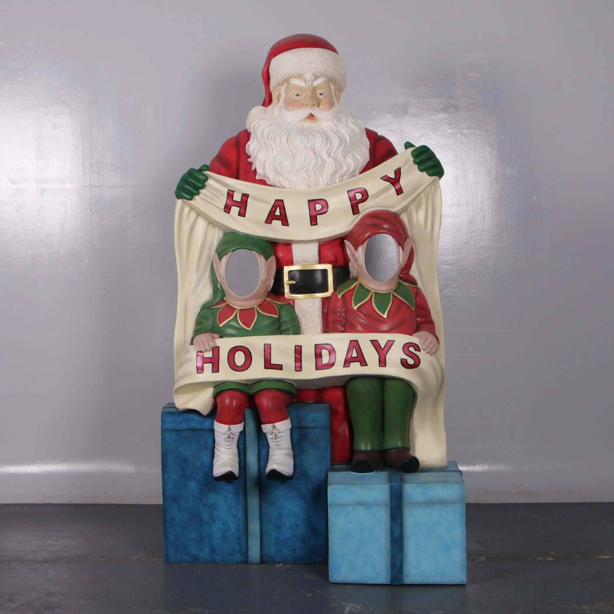 Santa Claus Happy Holidays Photo Op Life Size Statue
