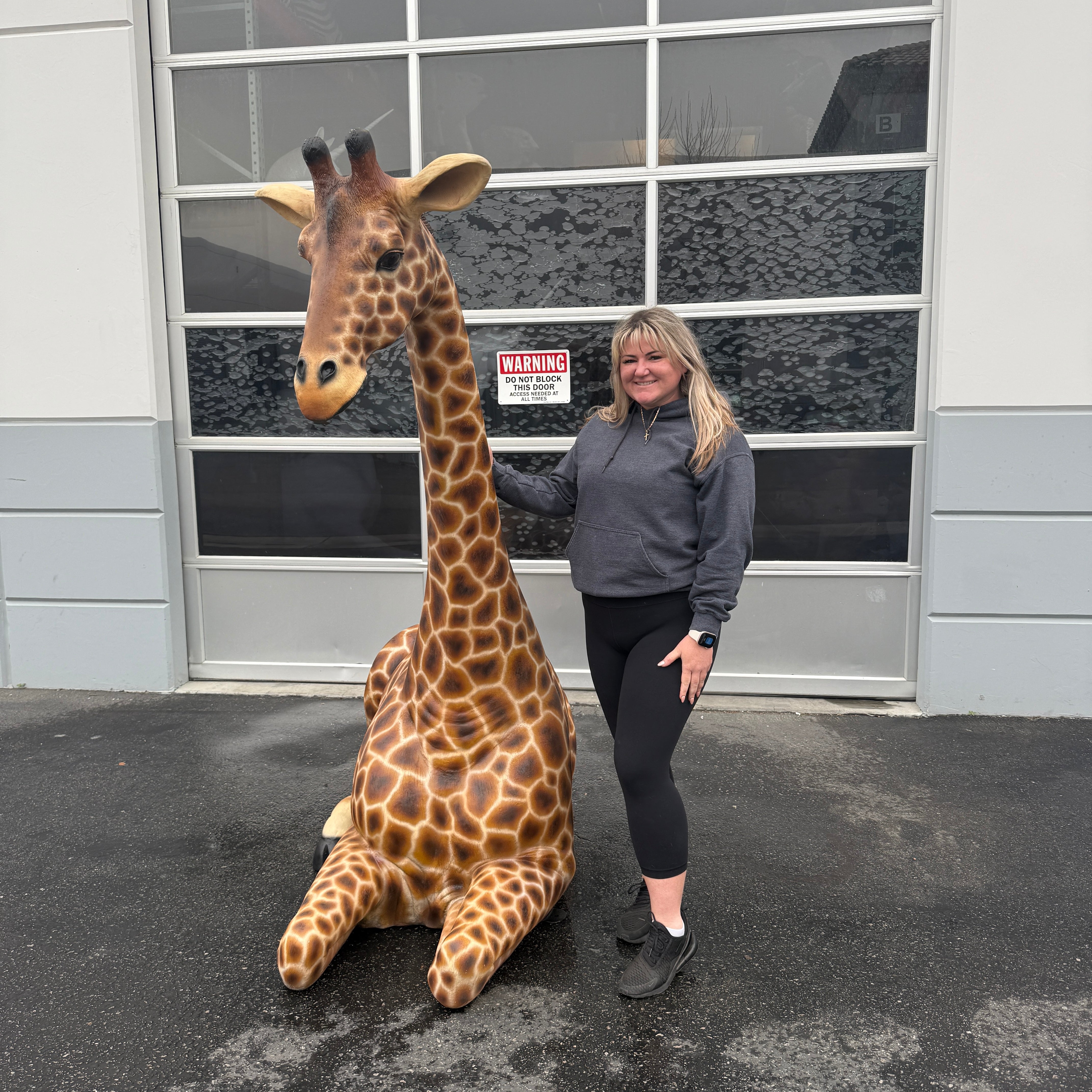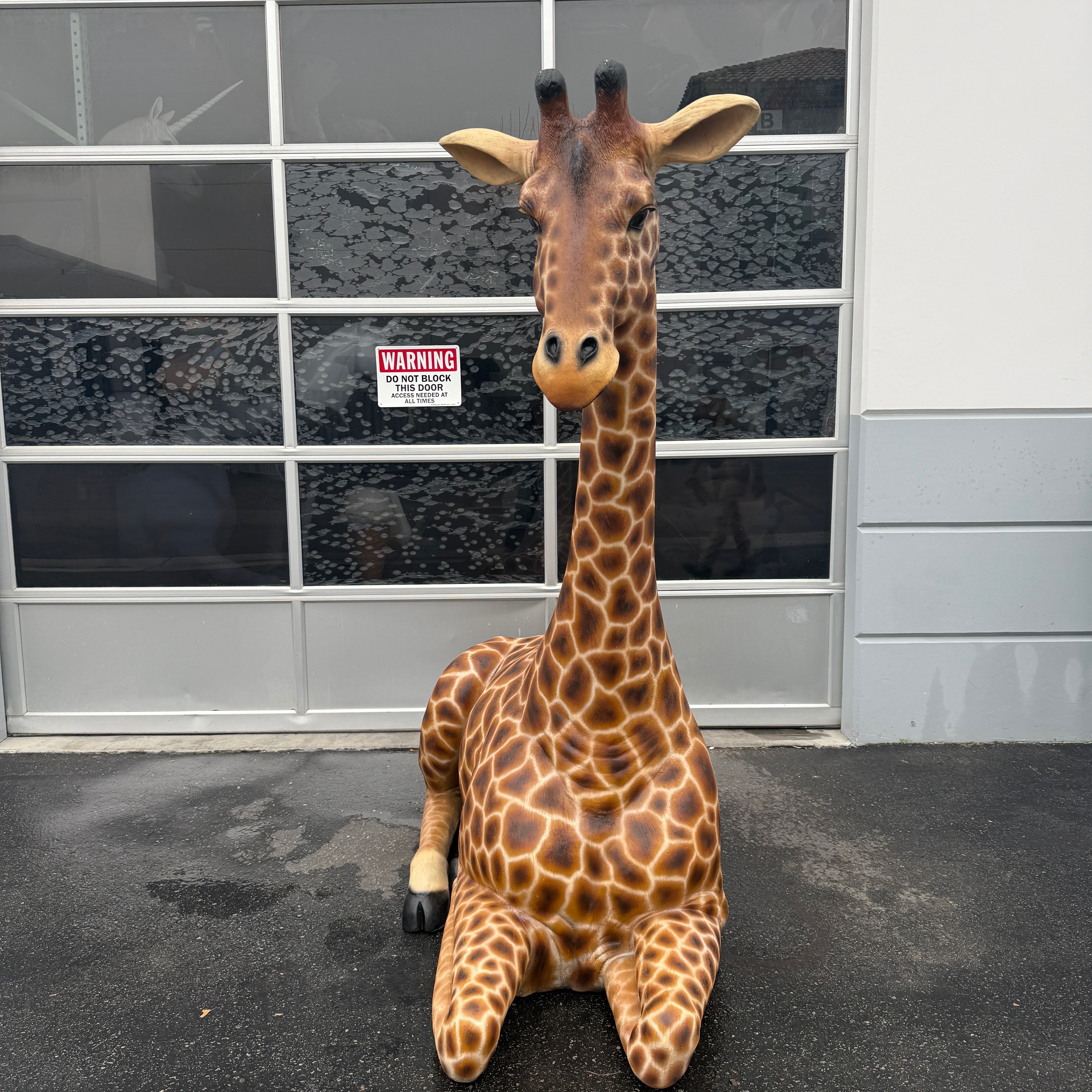 • Make a truly grand statement with this breathtaking life-size sitting giraffe statue. Poised in a relaxed sitting posture, this impressive sculpture commands attention and adds a unique touch of wildlife elegance to any setting. Whether placed indoors as a stunning centerpiece in a large living area or outdoors as a captivating addition to your garden or patio. This giraffe statue is sure to become a beloved and admired feature. Crafted for durability and realistic detail. It's the perfect way to infuse your space with personality and a touch of the extraordinary.