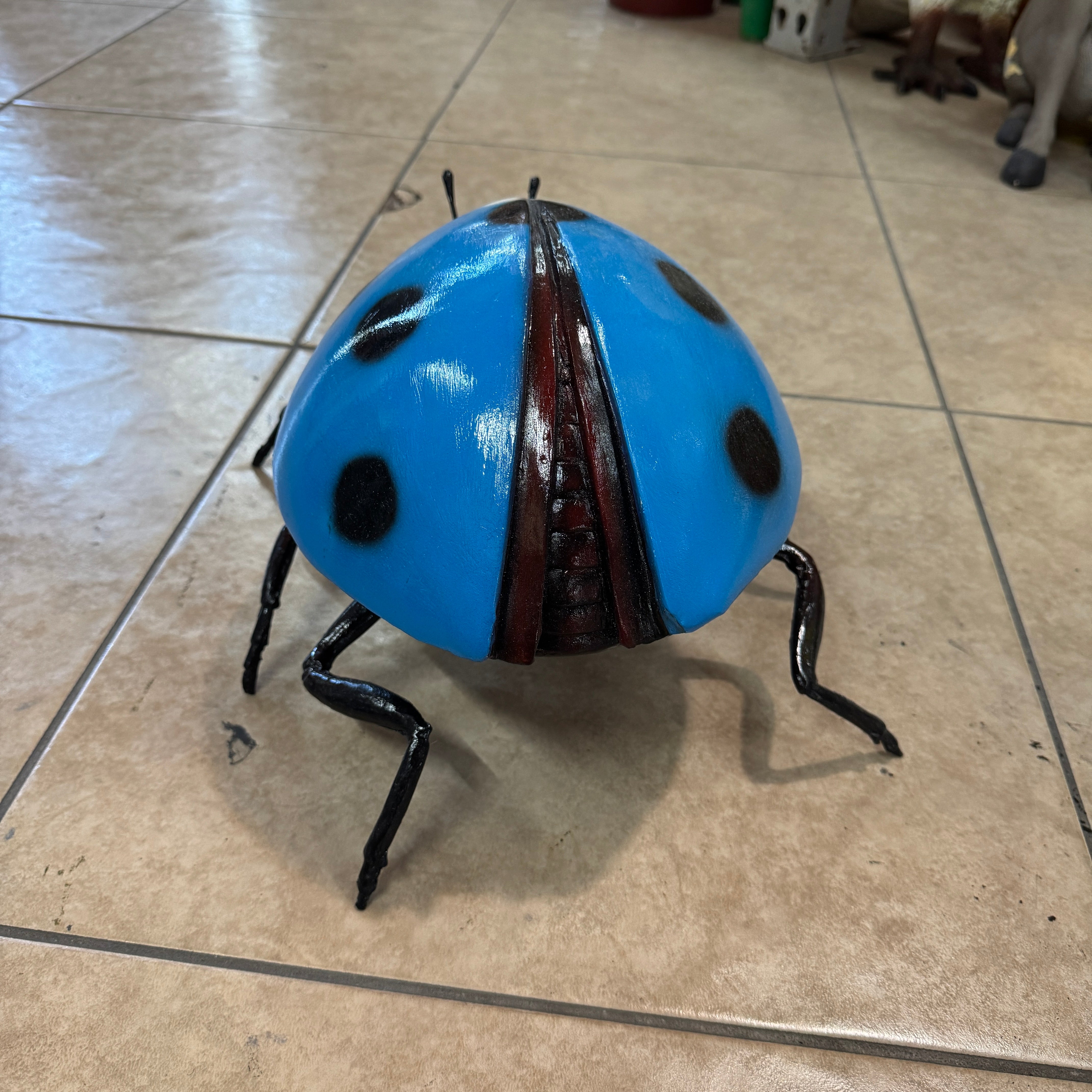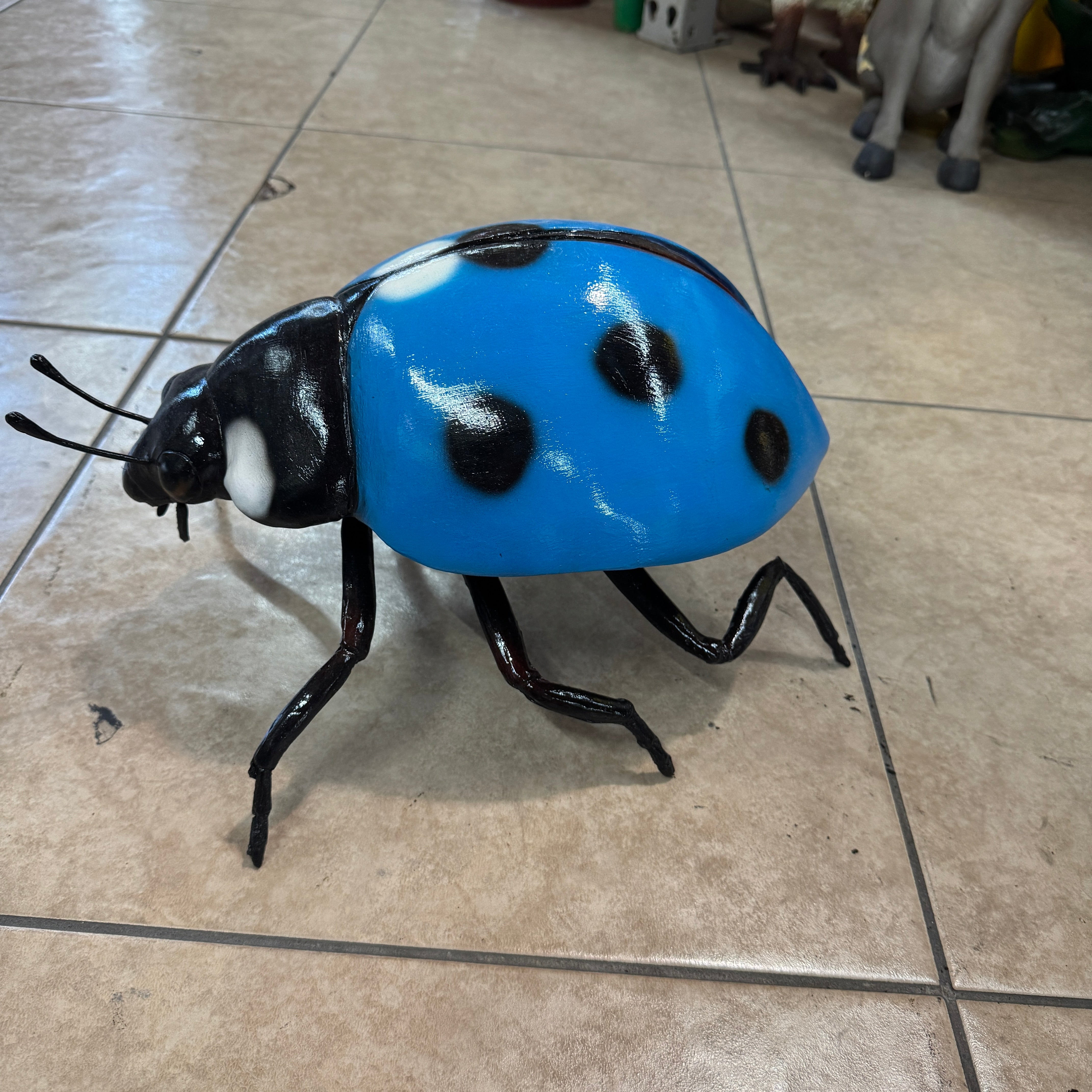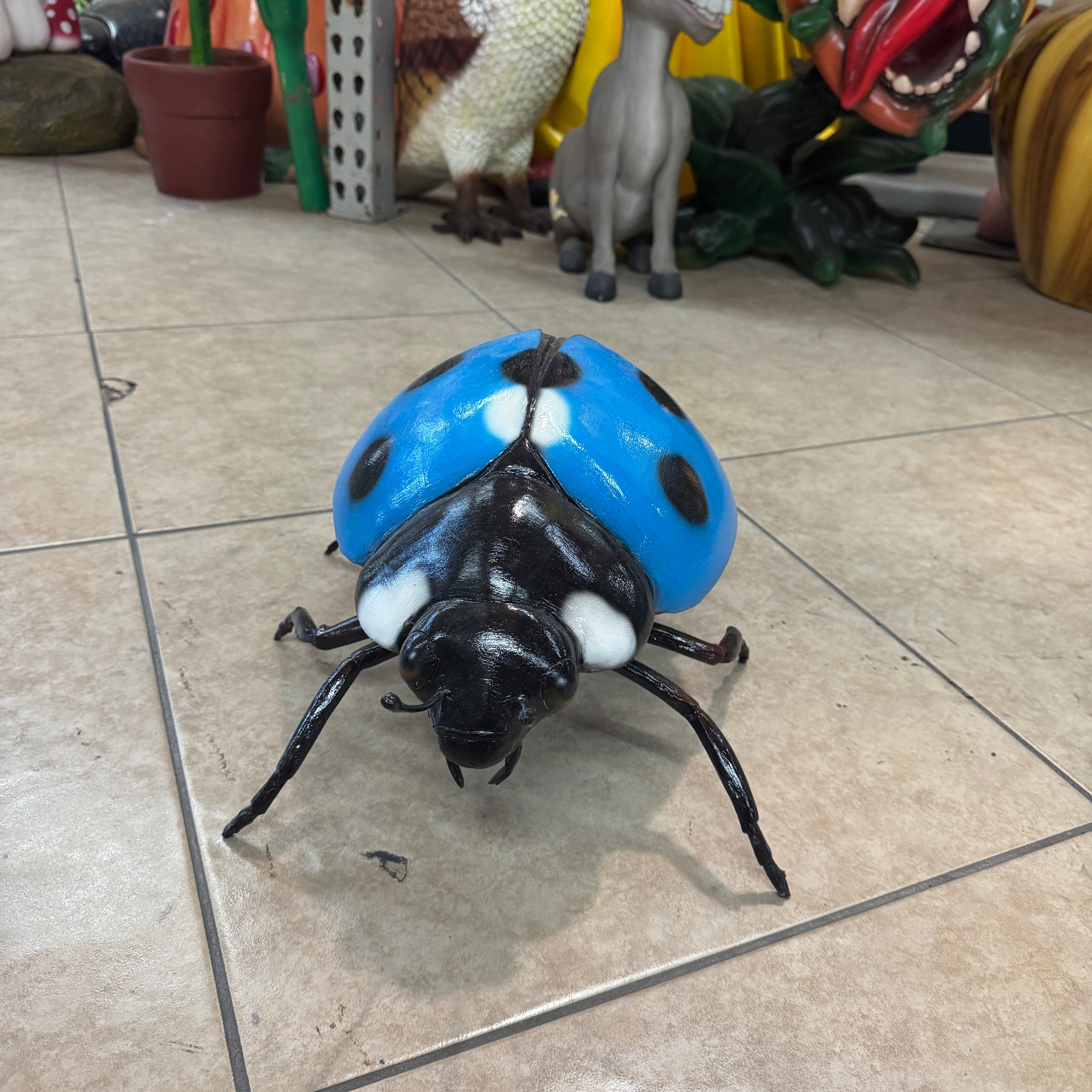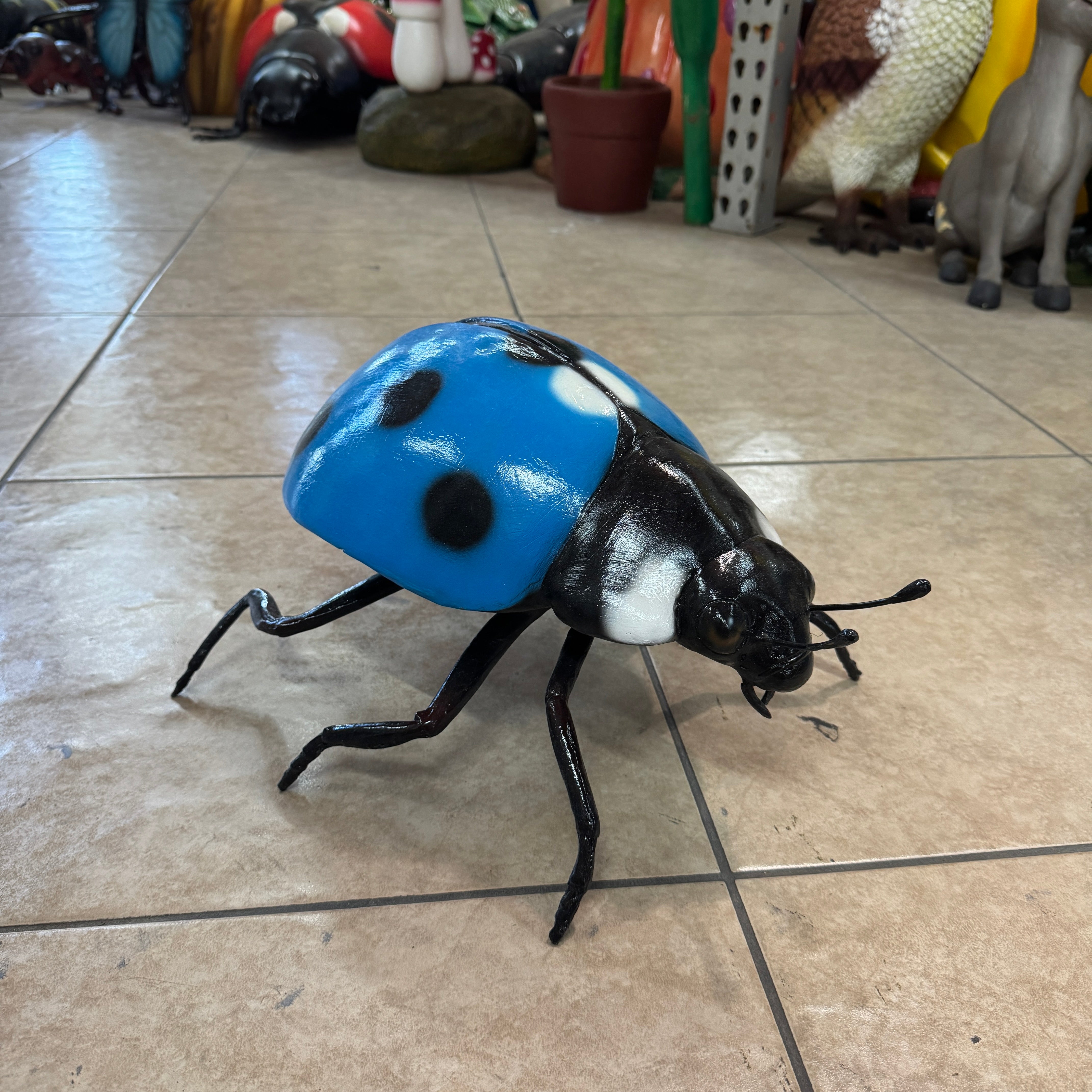 Small Blue Lady Bug Over Sized Insect Statue