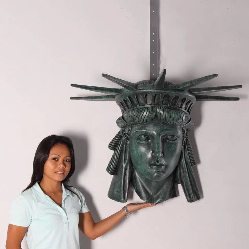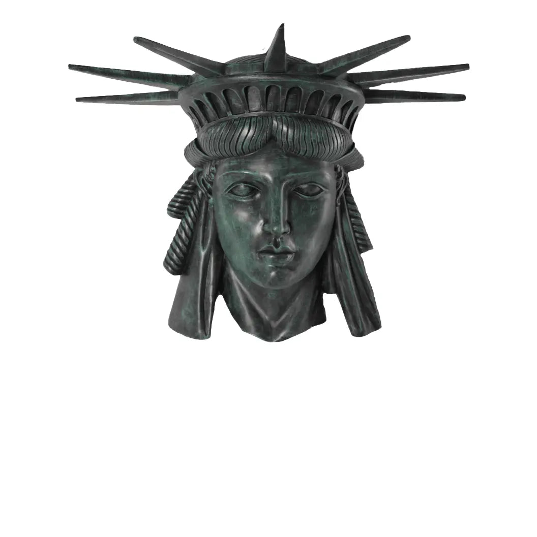 • A reproduction of the Statue of Liberty Head in a patina color to hang on the wall.