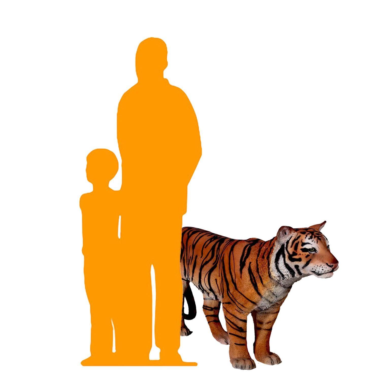 - This life-size Sumatran tiger statue is a powerful work of art that celebrates the rare and exotic allure of this magnificent creature. Sculpted with exceptional attention to detail, it portrays the Sumatran tiger in a commanding stance. This highlights its unique, closely spaced stripes and intense gaze. The carefully applied finish enhances the lifelike quality of its fur and form, creating a truly captivating piece. Perfect for those who appreciate impactful wildlife art and wish to bring a touch of the wild's unique beauty into their surroundings.