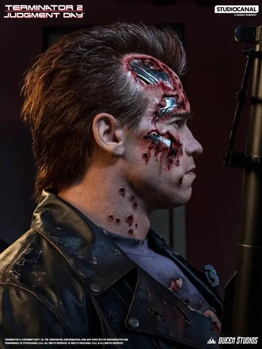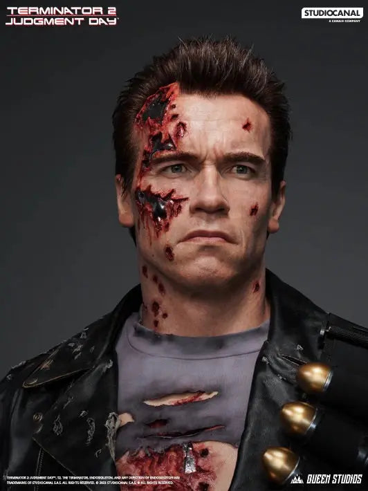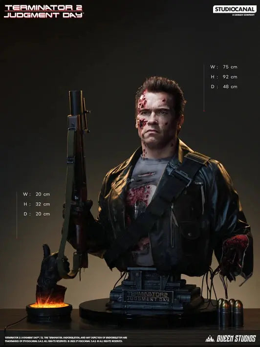 - From the 1991 sequel, Terminator 2: Judgement Day, comes this life size bust statue of T-800, as portrayed by Arnold Schwarzenegger.