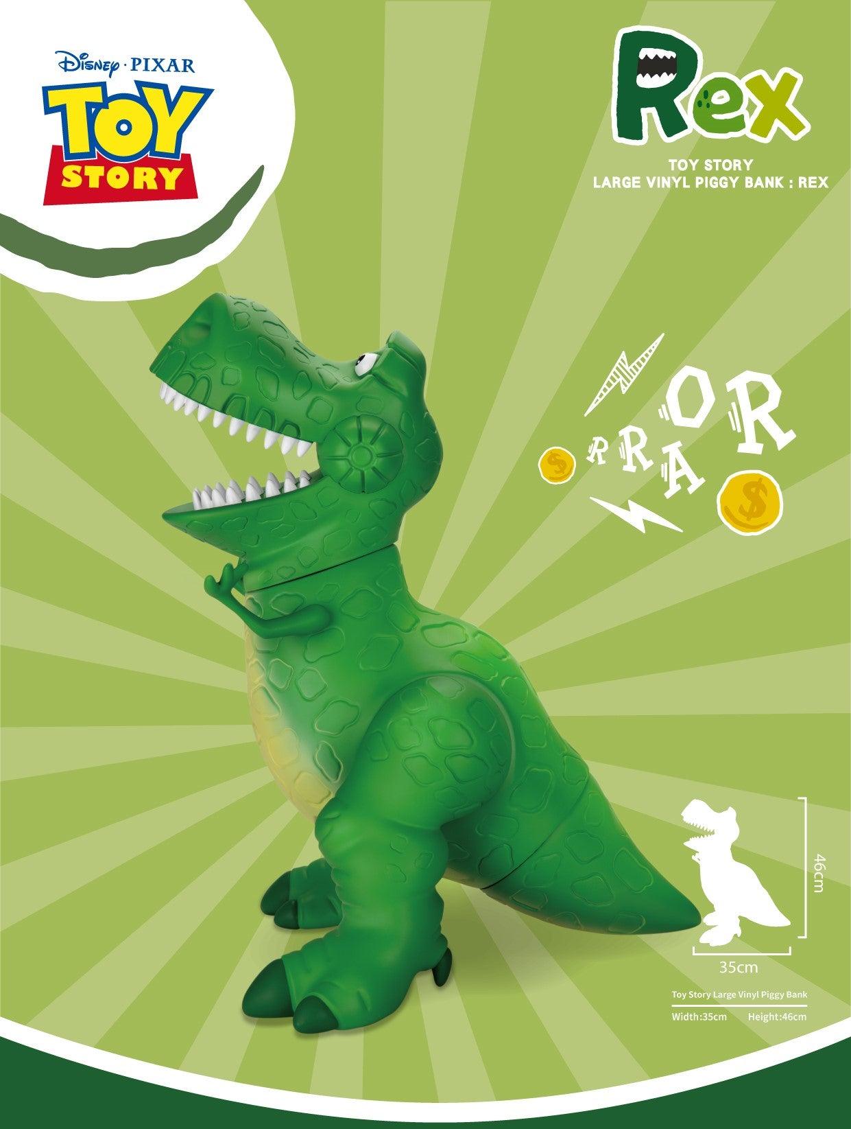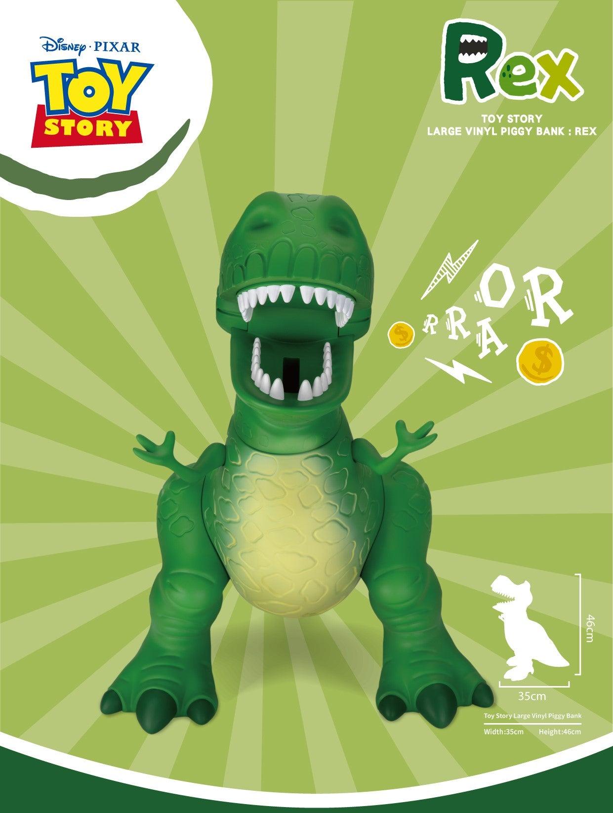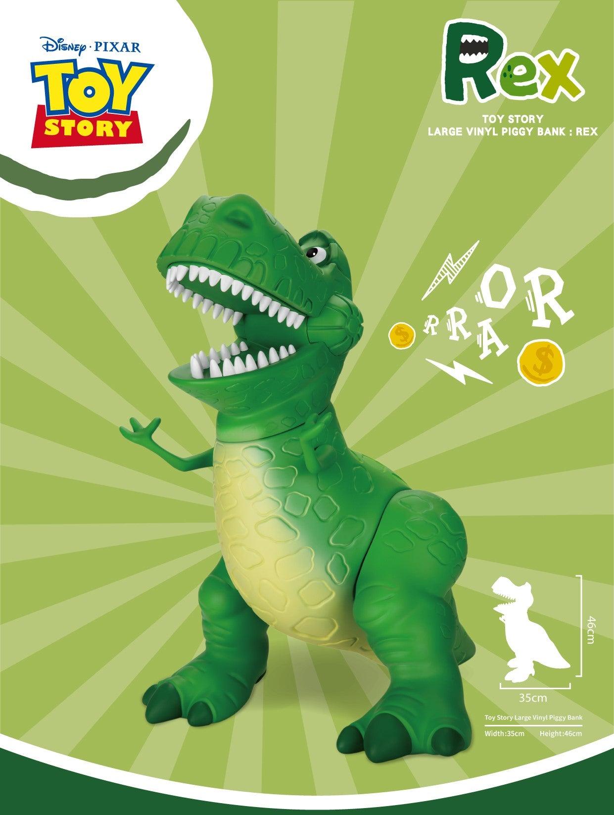 • "ROAR!" (Well, maybe a gentle, slightly anxious roar) Save your spare change with this adorable Toy Story Rex Piggy Bank Statue! This charming figurine captures everyone's favorite Tyrannosaurus Rex in a surprisingly endearing pose, ready to help you keep your coins safe and sound.