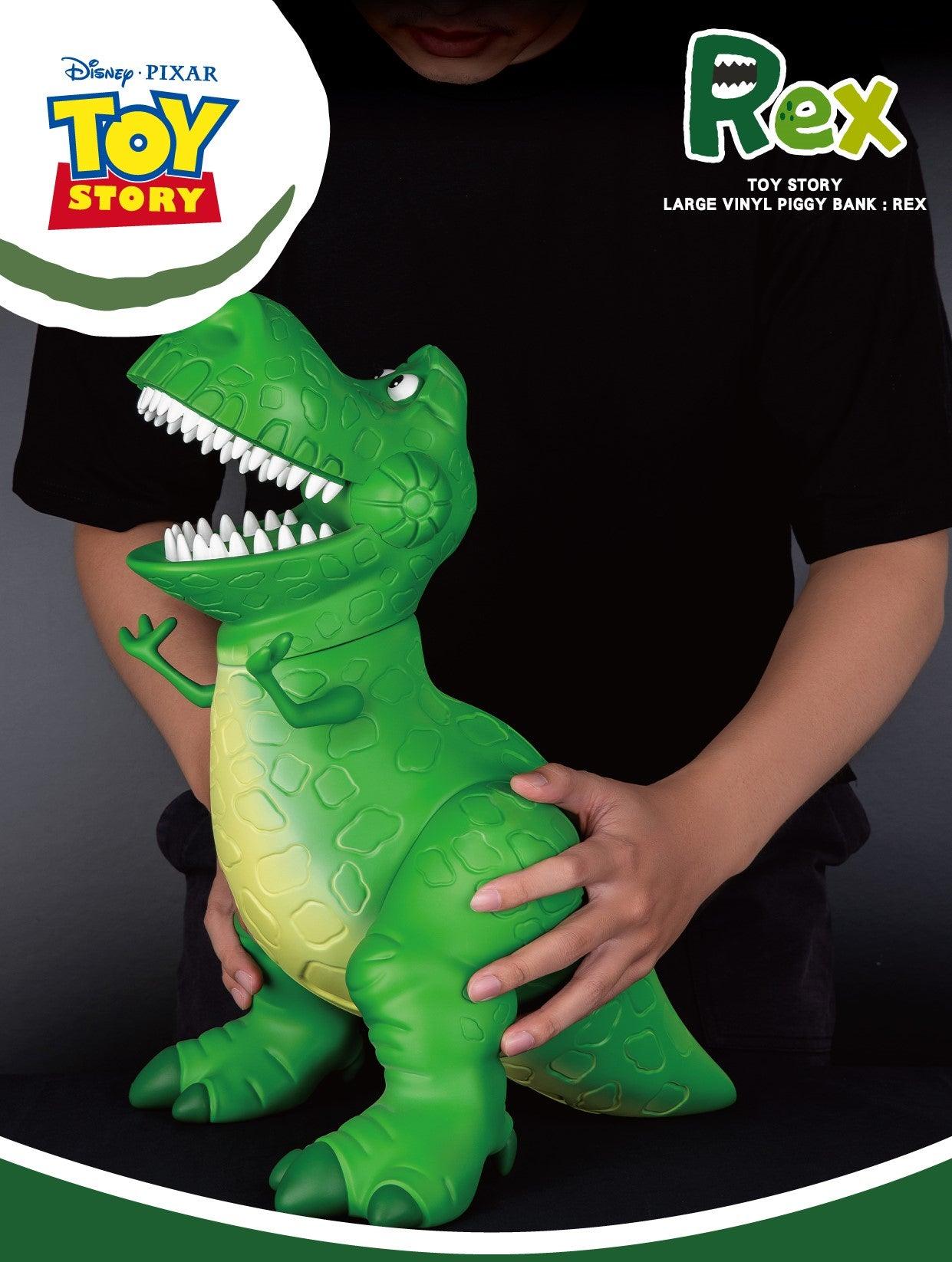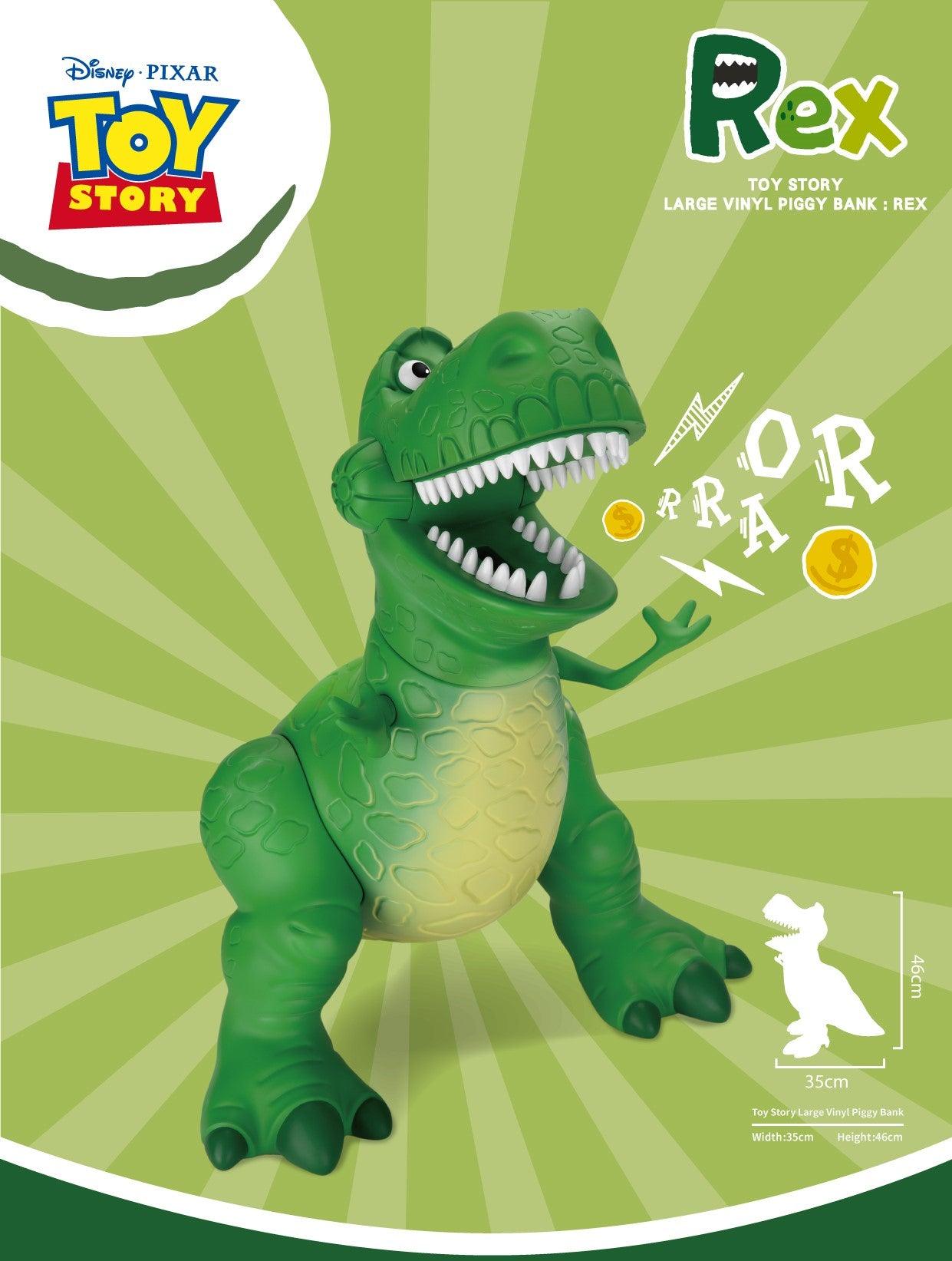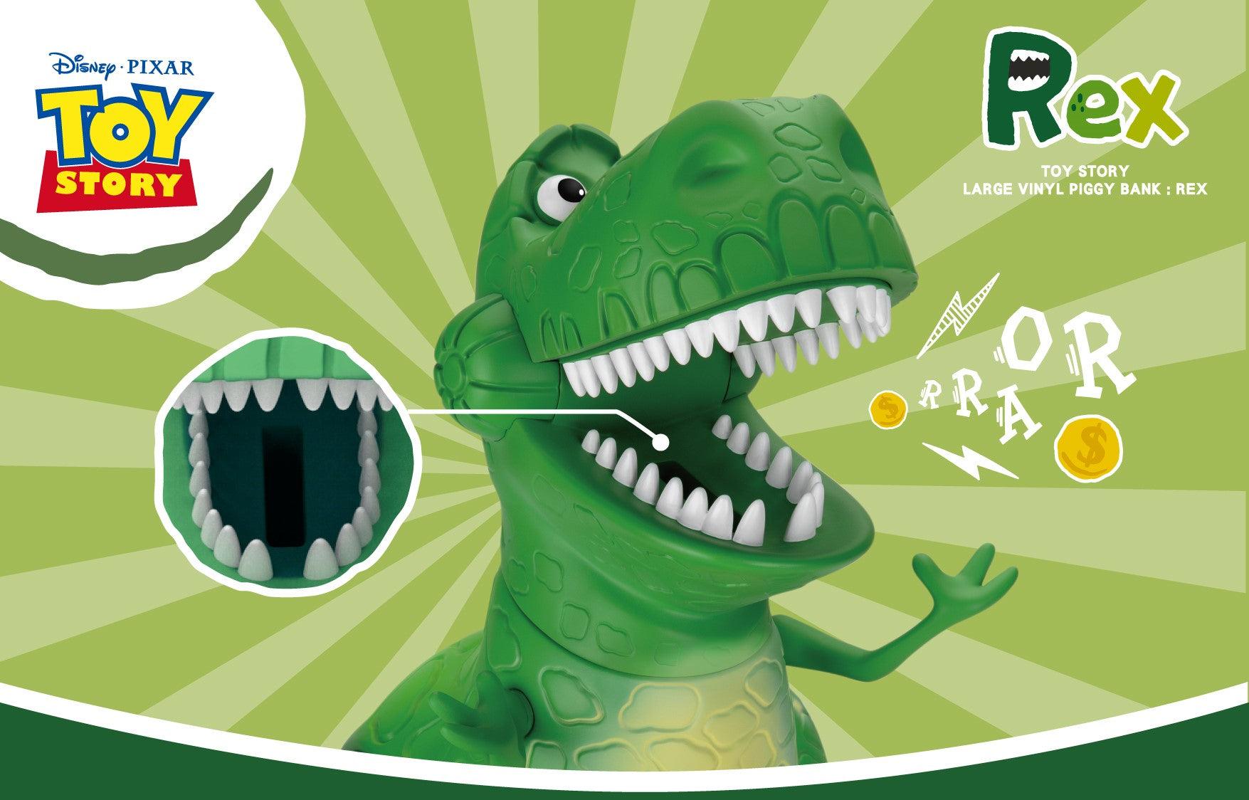 • "ROAR!" (Well, maybe a gentle, slightly anxious roar) Save your spare change with this adorable Toy Story Rex Piggy Bank Statue! This charming figurine captures everyone's favorite Tyrannosaurus Rex in a surprisingly endearing pose, ready to help you keep your coins safe and sound.