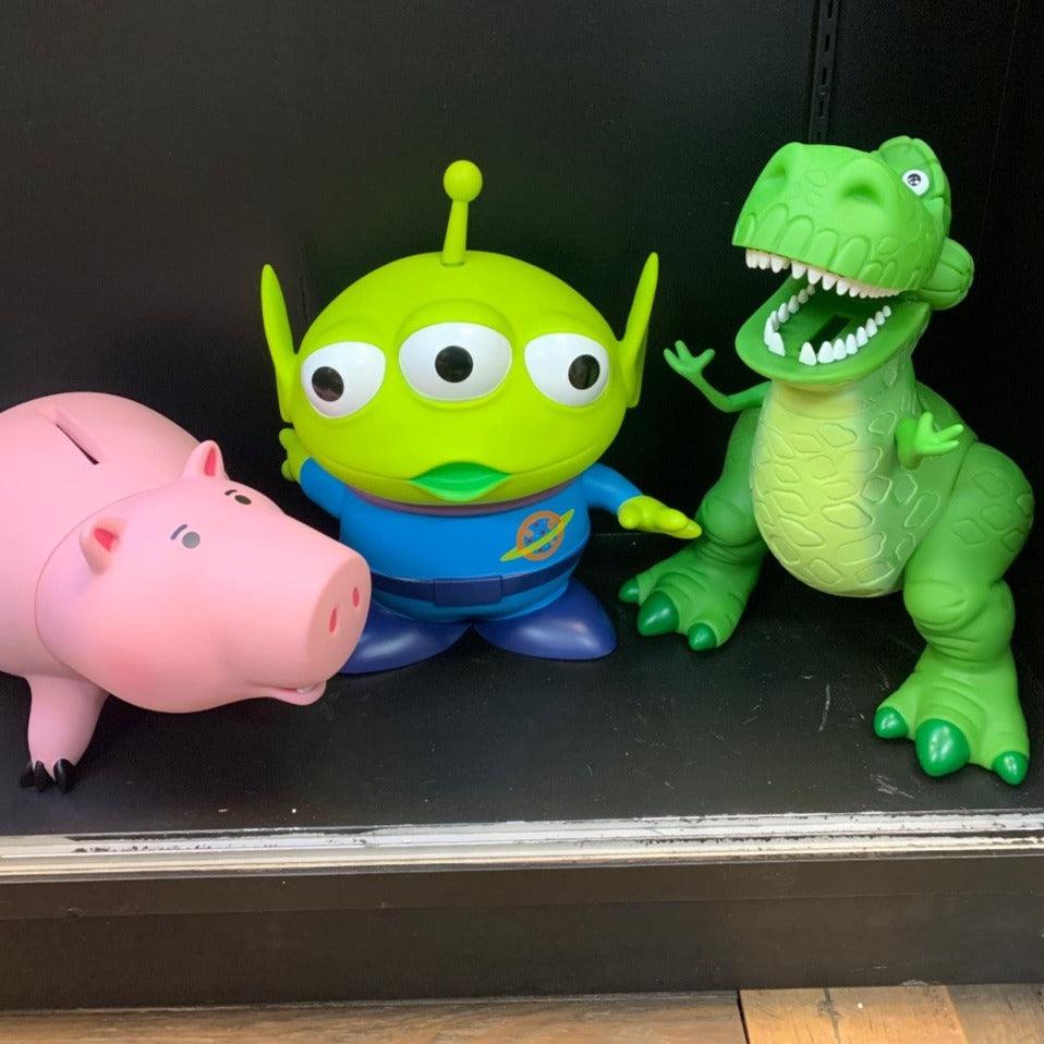 • The easily removable tail makes emptying your treasure trove simple when it's time for a new video game or maybe even a trip to Pizza Planet! This Rex piggy bank makes a wonderful gift for Toy Story fans of all ages, adding a touch of prehistoric charm to any room. He might worry about not being scary enough, but Rex is definitely serious about helping you save!