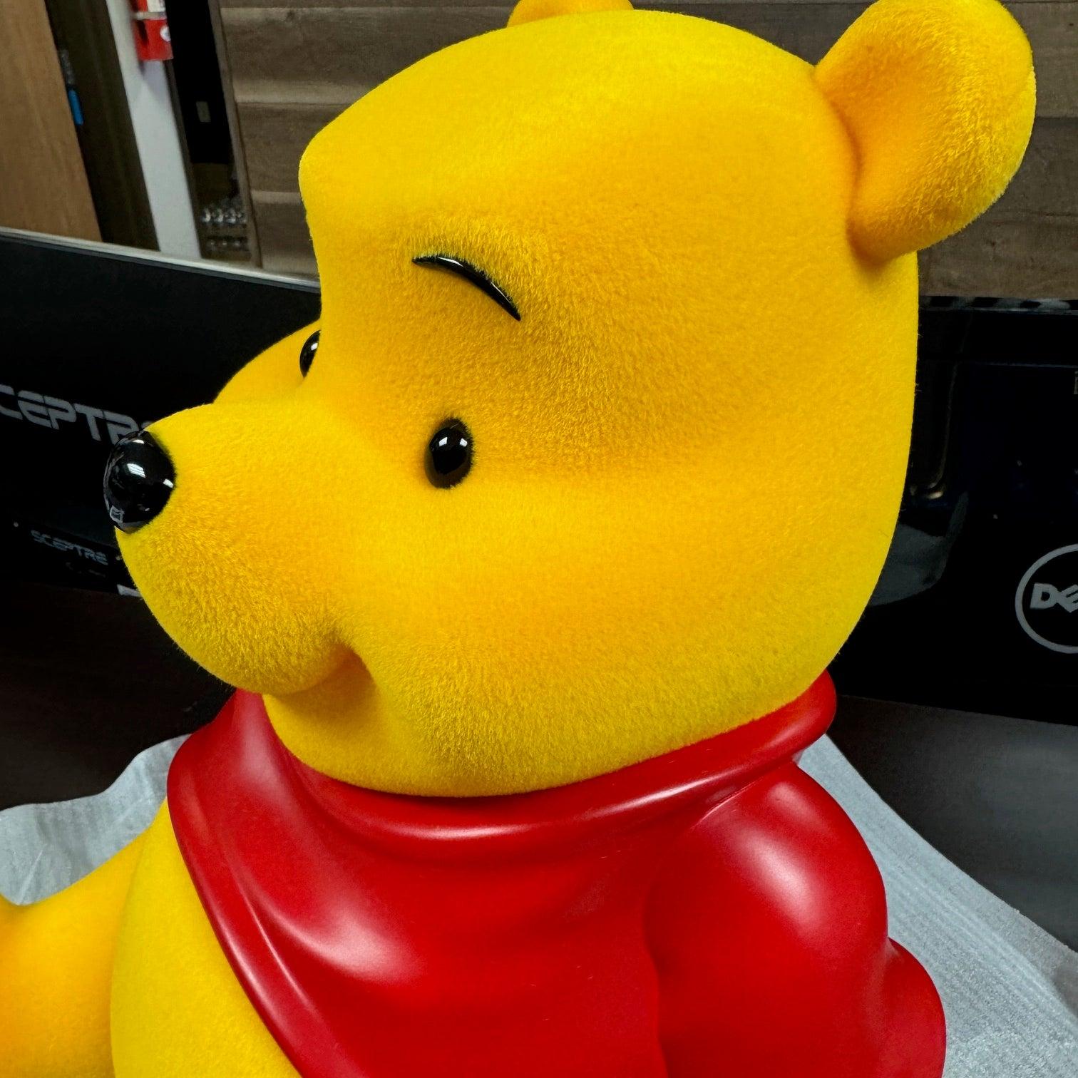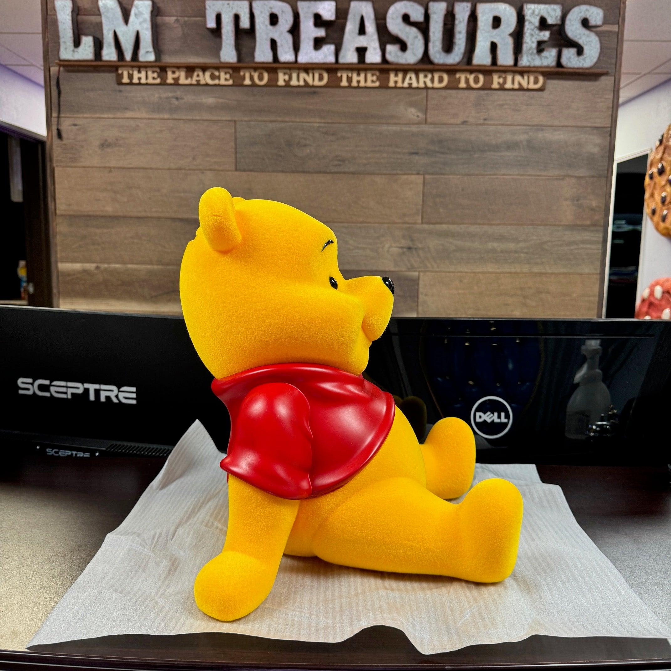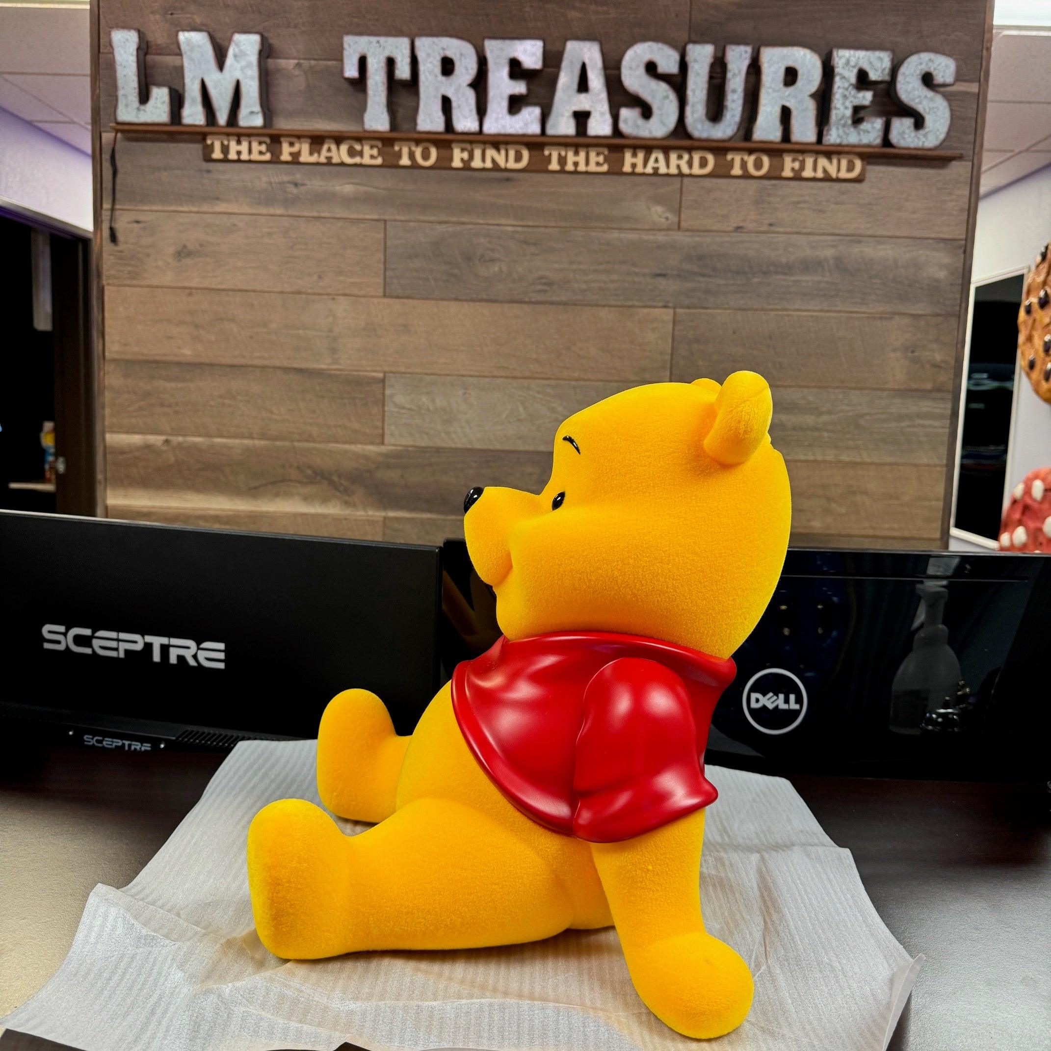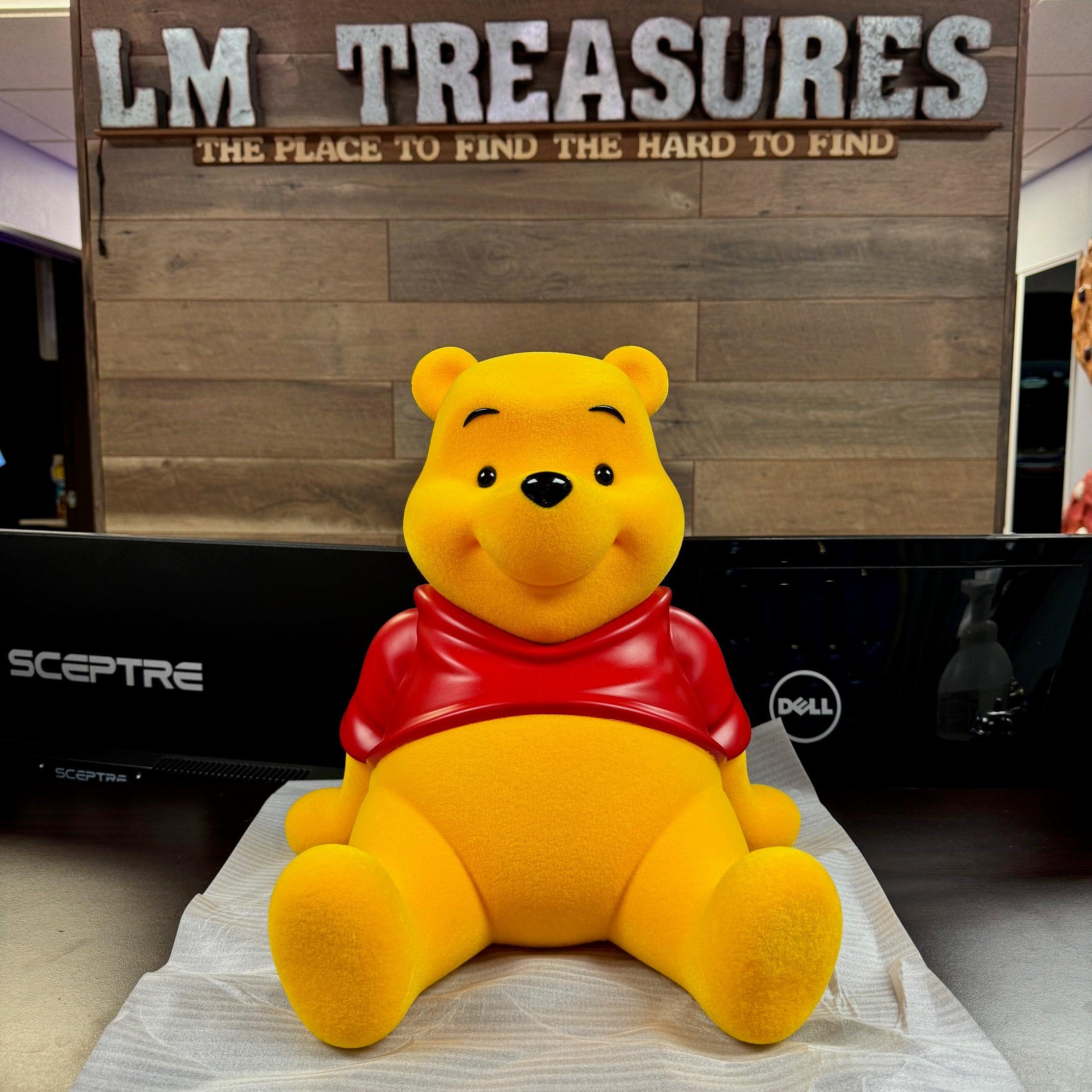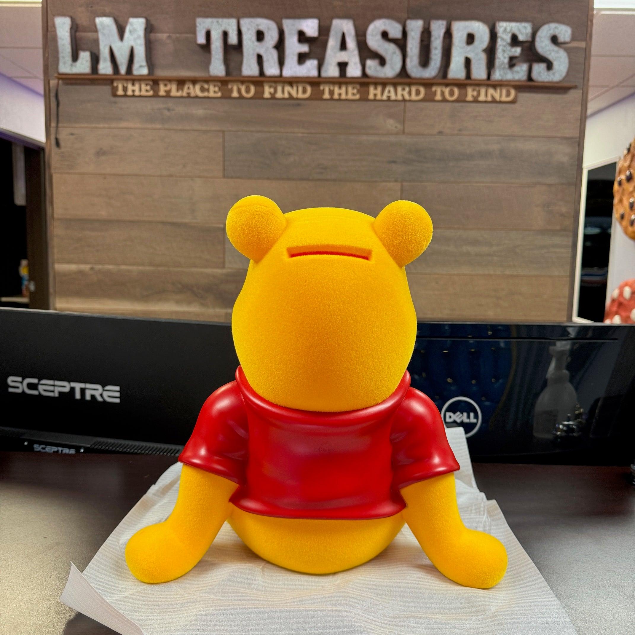 - Oh, bother... but in the best way possible! Embrace the cuddly charm of the Hundred Acre Wood with this special edition Velvet Winnie The Pooh Piggy Bank Statue! This unique figurine features our favorite honey-loving bear rendered in a soft, velvety finish, adding a touch of luxurious sweetness to your savings routine.
