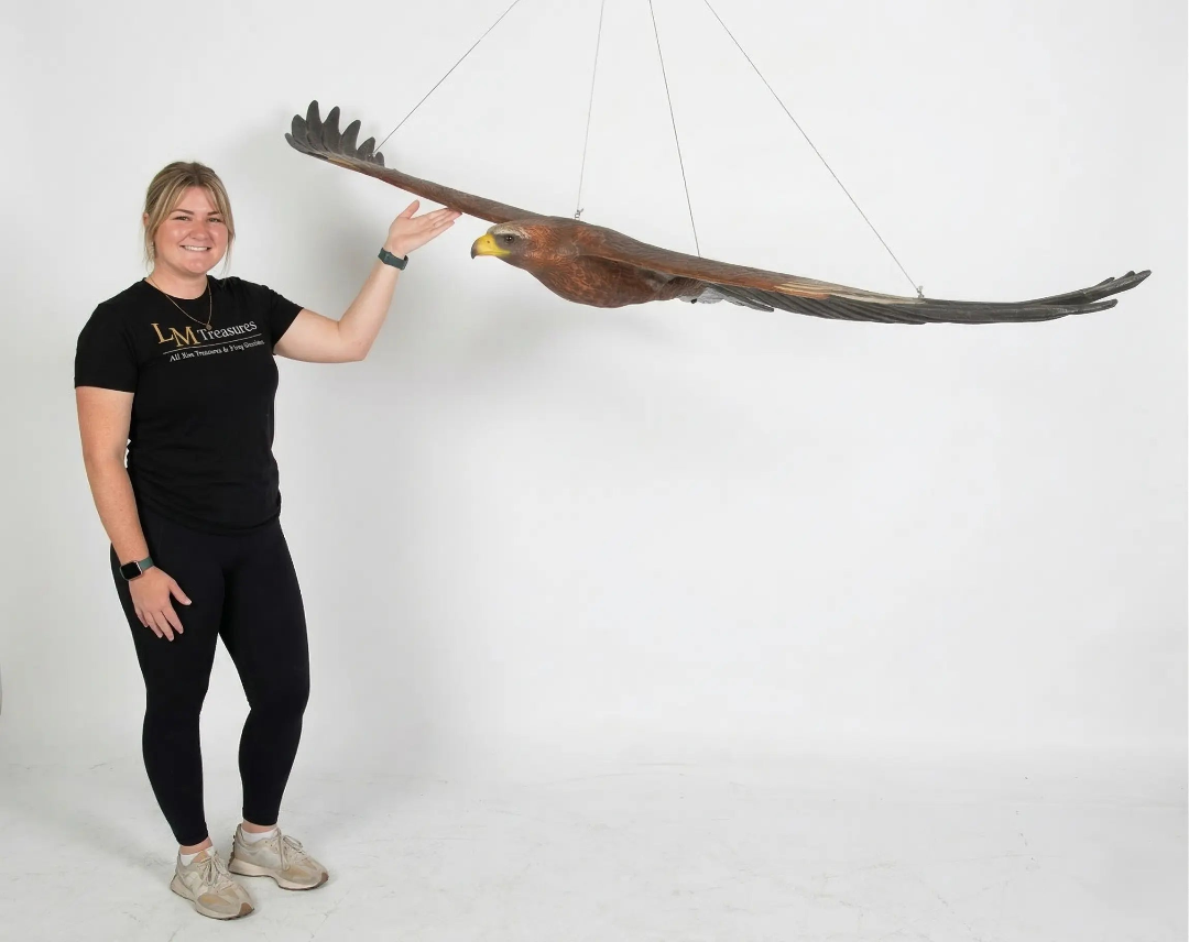 - Bring the awe-inspiring presence of Australia's largest bird of prey to your home or garden with our magnificent Life-Size Wedge-Tailed Eagle Statue. This stunning sculpture is crafted to capture the raw power and breathtaking beauty of this iconic raptor in incredible detail. The distinctive wedge-shaped tail, characteristic of this species, is faithfully reproduced, adding to the overall realism.
