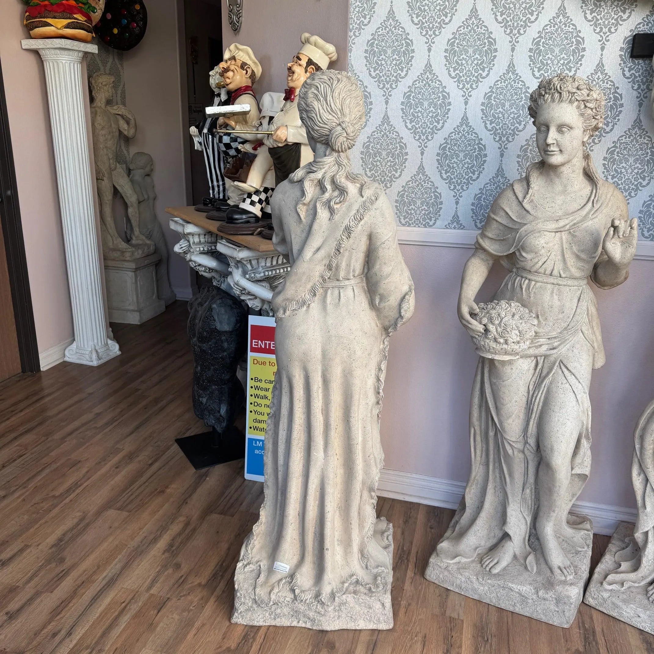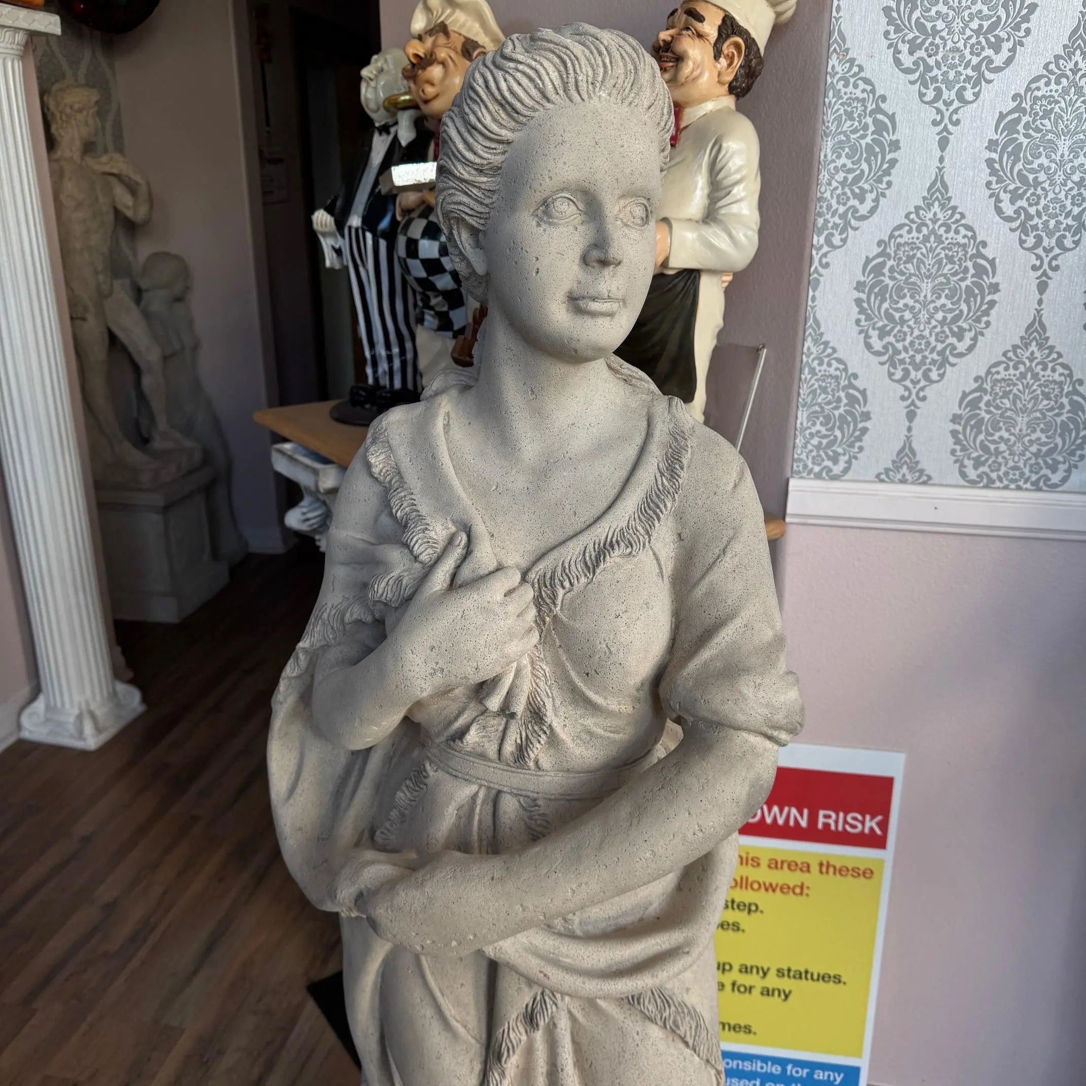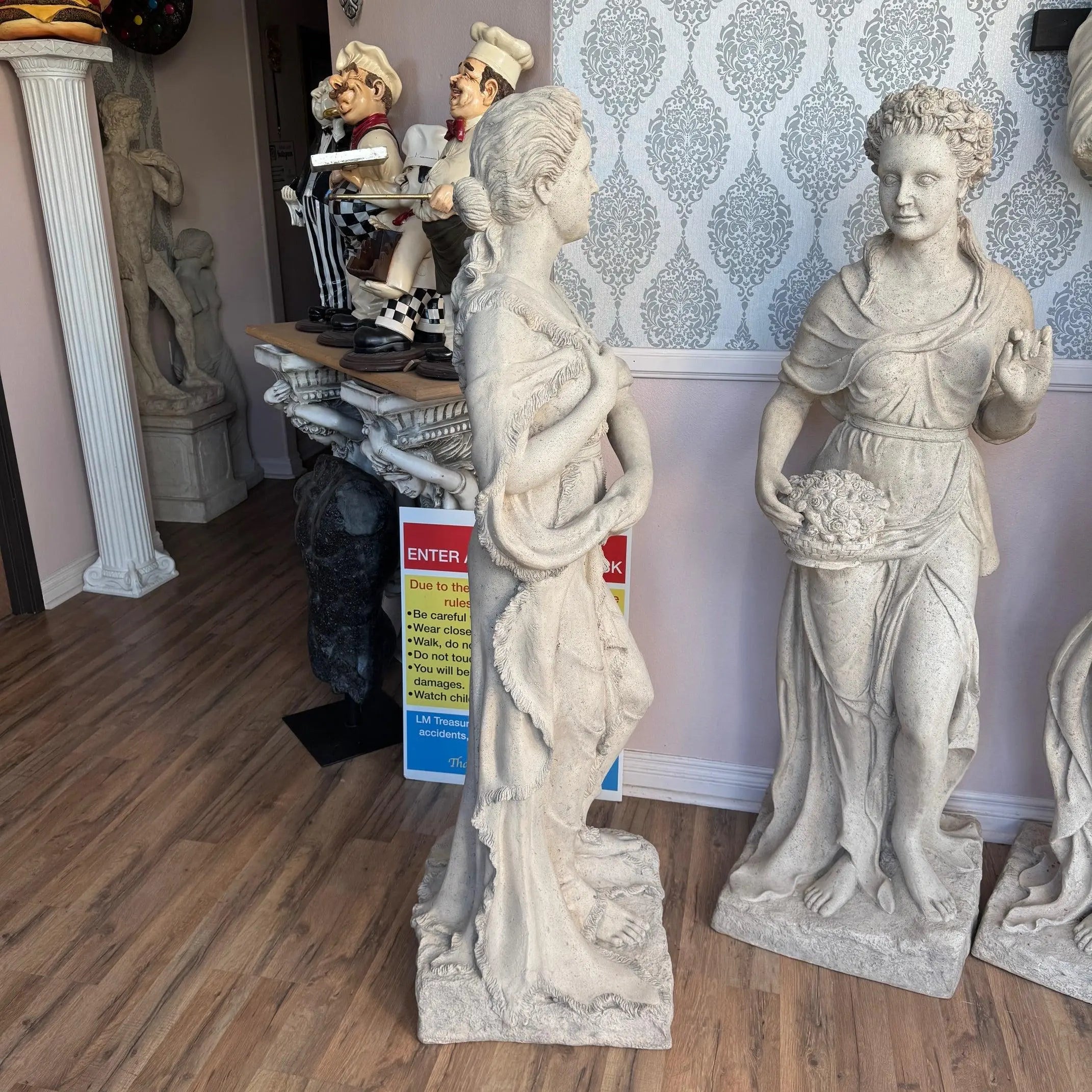 - Celebrate the artistry of winter with this meticulously crafted life-size stone style statue. The intricate details, from the texture of the stone to the delicate features of the figure, make this a true work of art. This statue is sure to be a focal point wherever it's placed, adding a touch of sophisticated beauty.